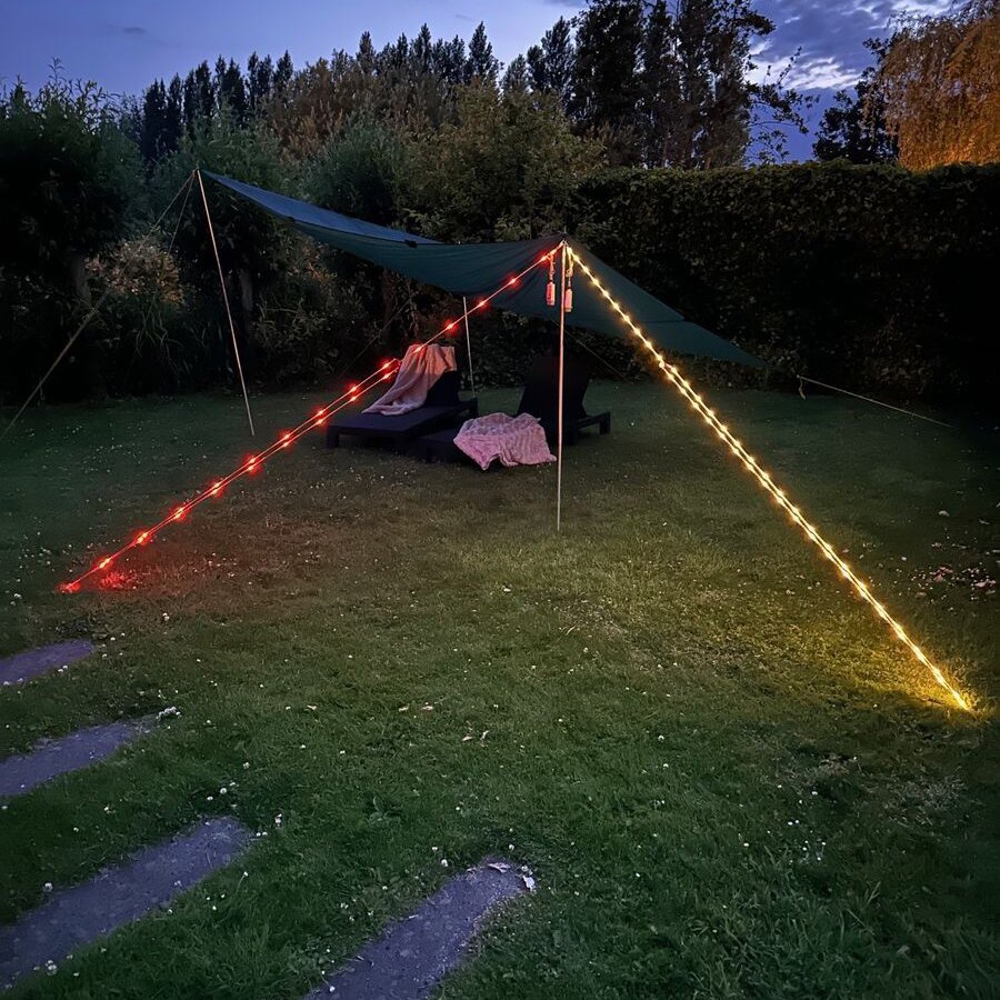Die 5 m lange Leine ist über die gesamte Länge mit hellen LEDs ausgestattet und sorgt für mehr Sichtbarkeit rund ums Zelt. Mit acht Leuchtmodi (von sanftem Licht bis Blinksignal), per USB-A wiederaufladbar, dank integriertem Karabinerhaken schnell und sicher zu befestigen.