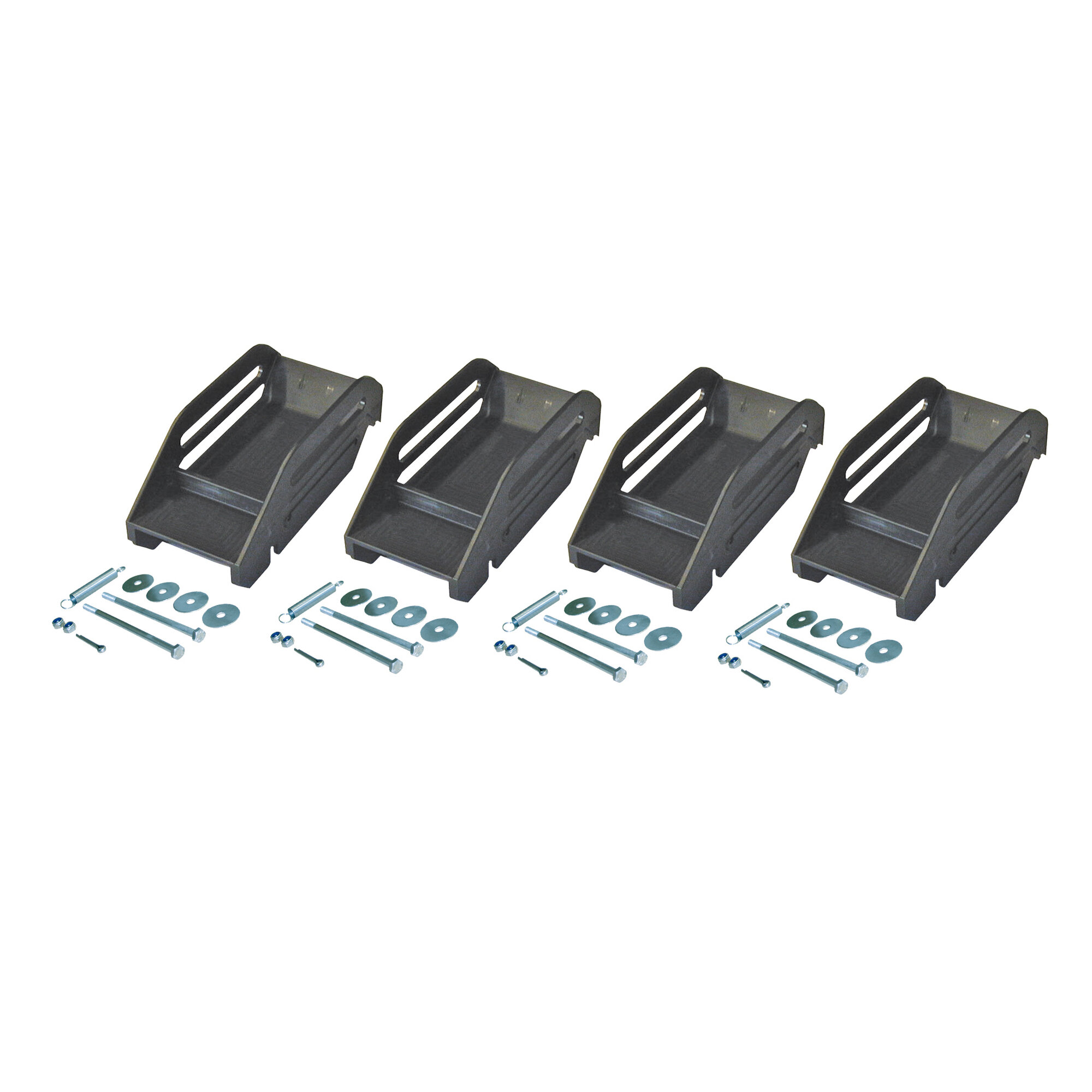 Anbau: Durch den Adapter wandert der AL-KO big foot™ 45 mm näher zum Boden. Bitte Bodenfreiheit beachten.Lieferumfang: 4 Adapter 45 mm, 4 Satz Befestigungsmaterial an der Stütze, Montageanleitung.