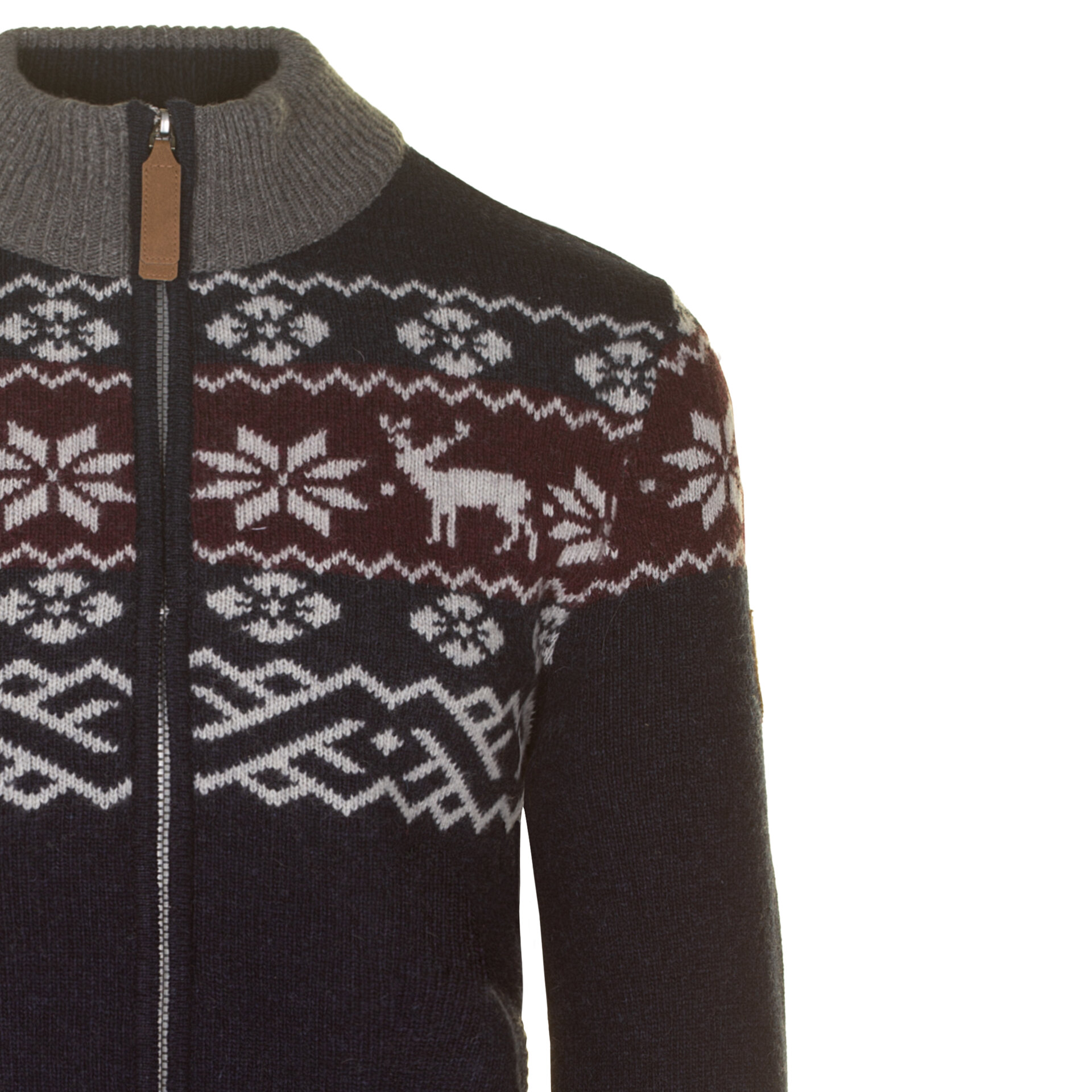 Die Walcheralm Strickjacke von Almgwand wärmt wie fast keine andere. Blickfang ist das bewusst traditionell gehaltene Norweger-Strickmuster, ohne den es im Winter einfach nicht geht. In legerem Schnitt, mit Stehkragen, zwei Eingrifftaschen und gerippten Bündchen gearbeitet. Reißverschluss mit Lederanhänger.