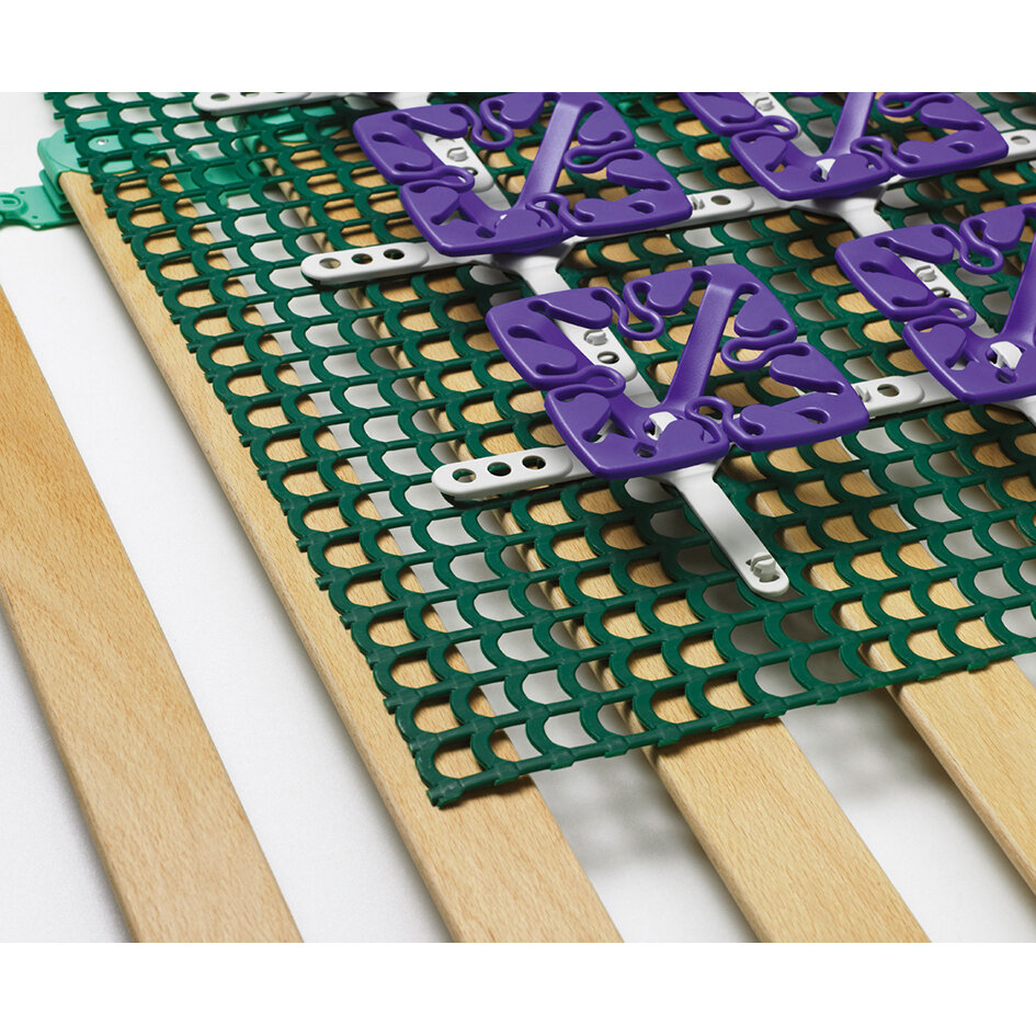 Für fest eingebaute Lattenroste, ermöglicht die Auflage der Froli Bett-Systeme Star und Travel, bietet sehr gute Luftdurchlässigkeit. Abmessungen L 2 x B 1 m, Gewicht ca. 60 g.