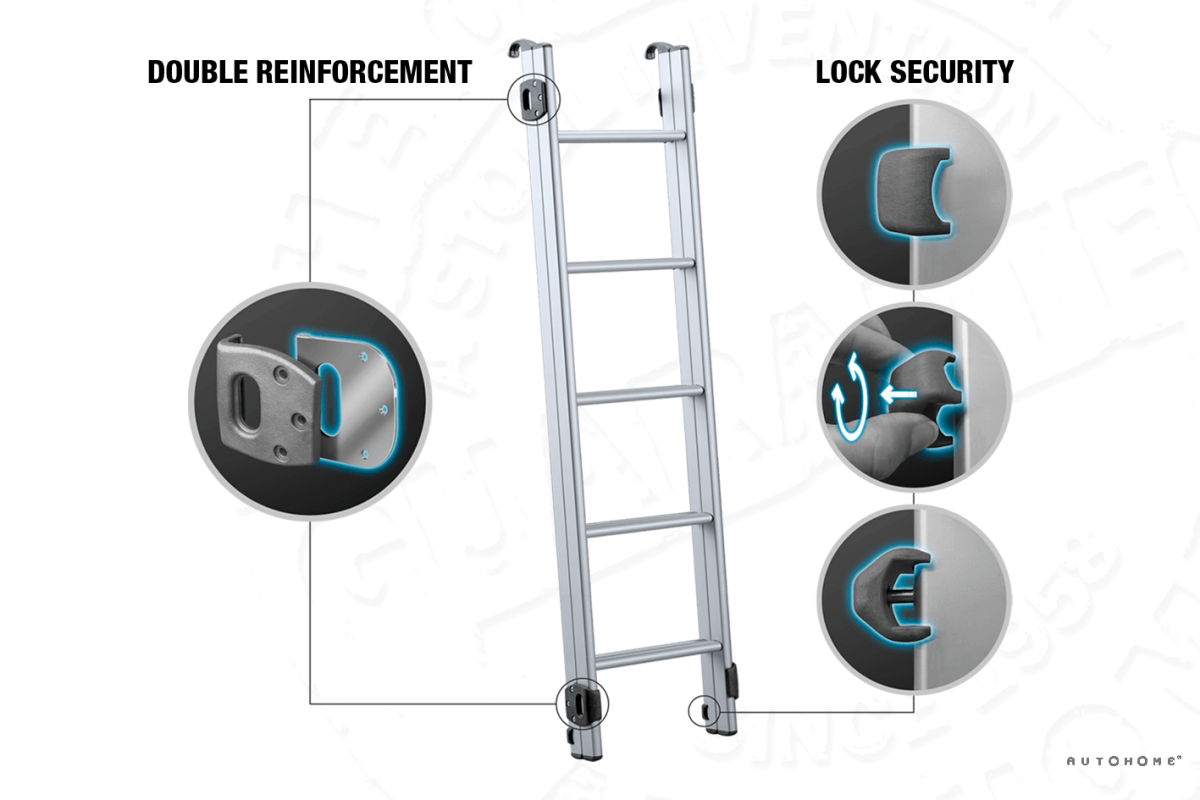- 1 Alu-Leiter: höhenverstellbar, mit automatischer Sicherheitssperre