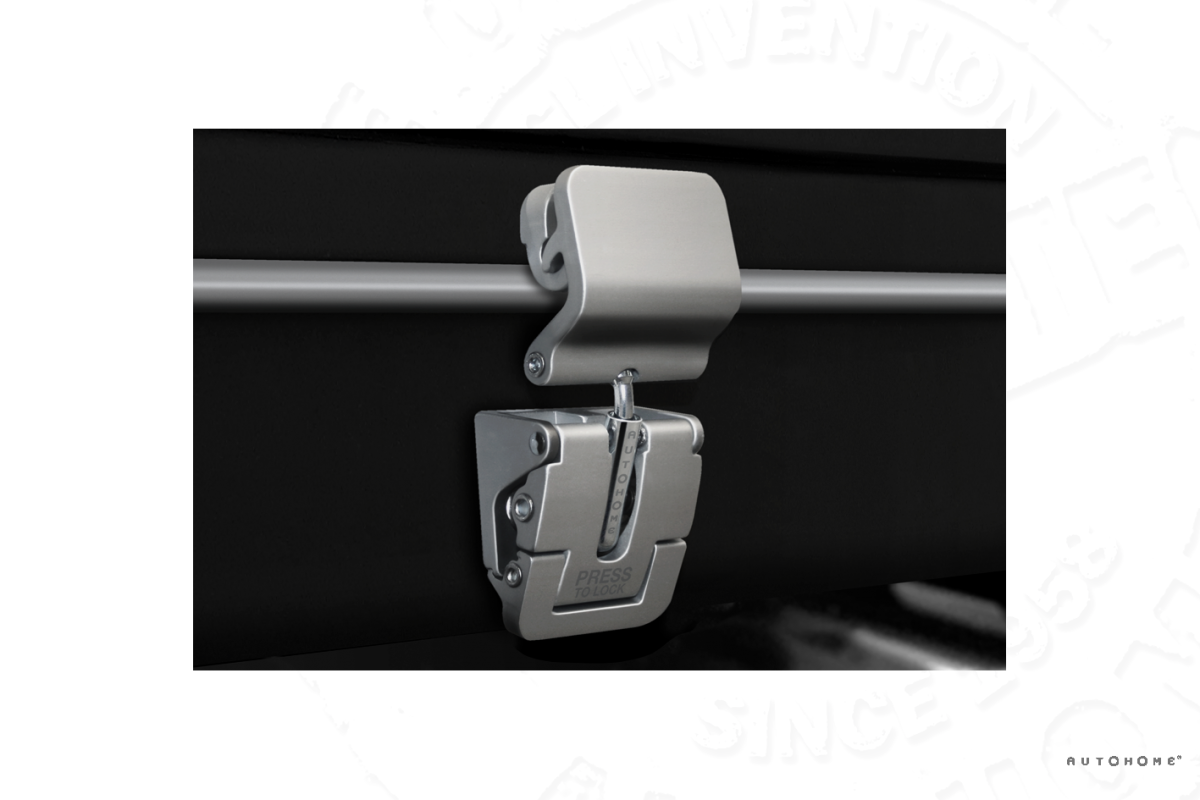 - Schließmechanismus der Hartschalen: Mit verstellbaren Verschlüssen aus Stahl zum Verriegeln des Dachzeltes.