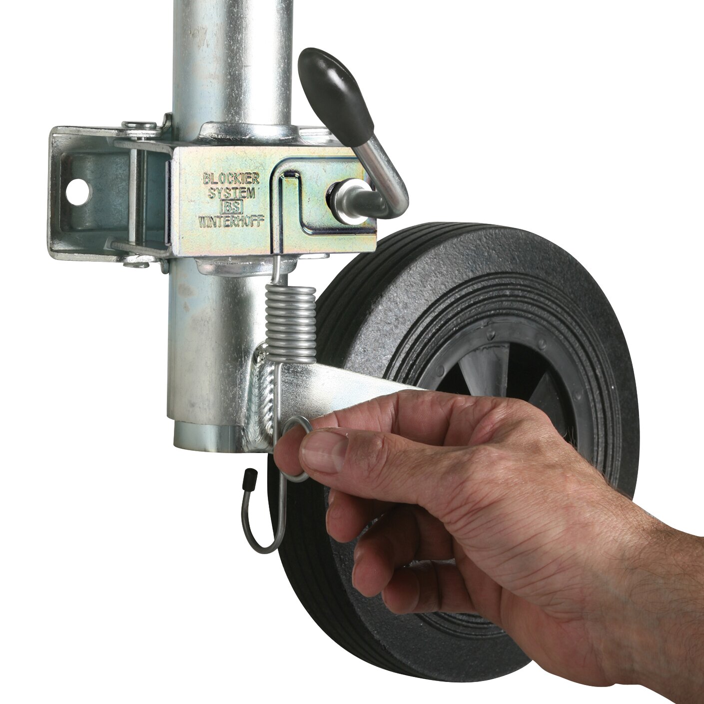 Das Blockiersystem sichert Stützräder ST 48 während der Fahrt.