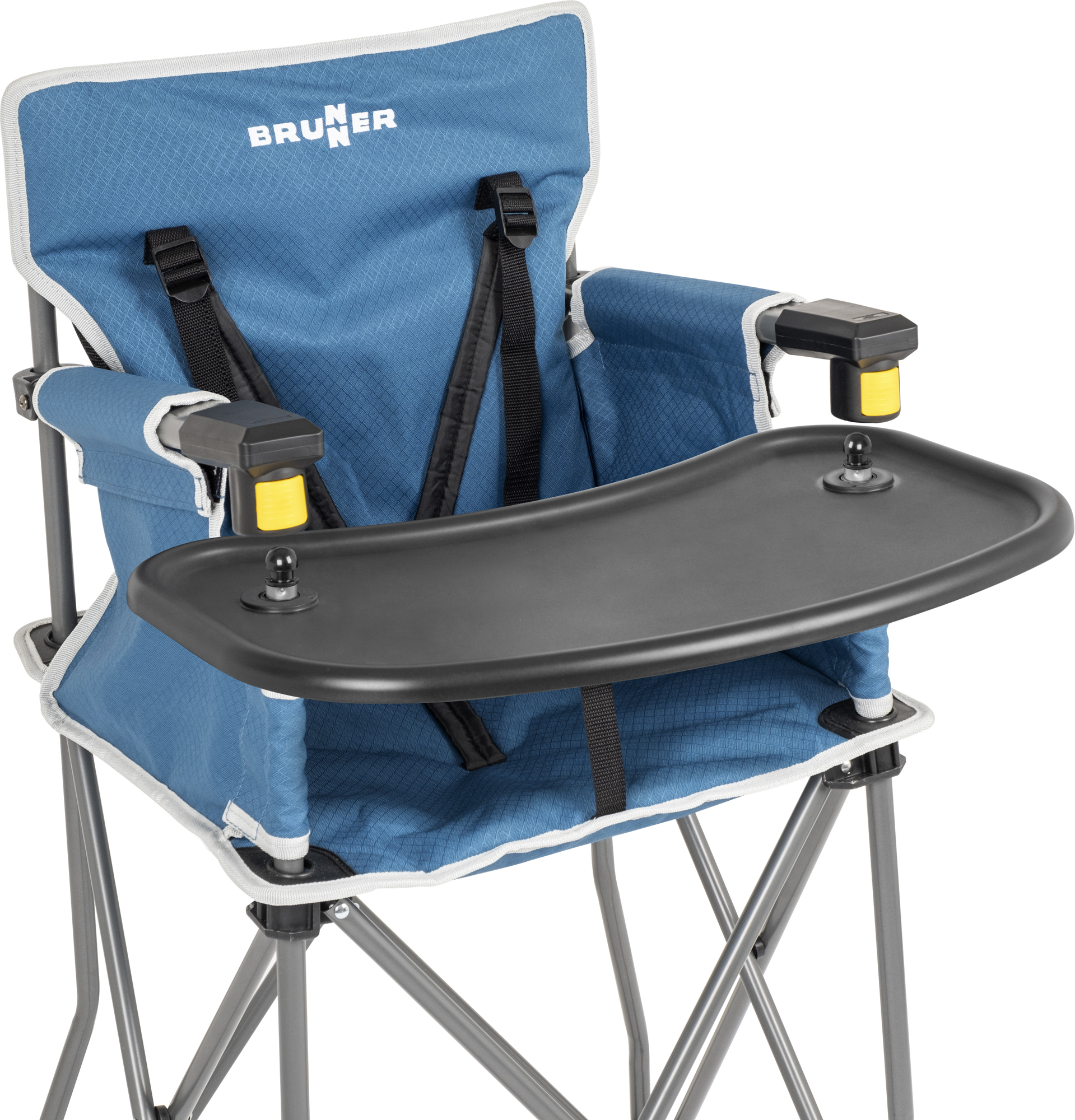 Platzsparender Babystuhl, geeignet für Kinder von 6 Monaten bis 3 Jahren (oder 15 kg). Perfekt für unterwegs. Hergestellt mit einem speziellen Sicherheitsstahlrahmen, der ein Umkippen des Hochstuhls verhindert. Der praktische gepolsterte Sitz ist leicht abwaschbar und hat einen verstellbaren 3-Punkt-Gurt. Komplett mit einem praktischen Tablett.