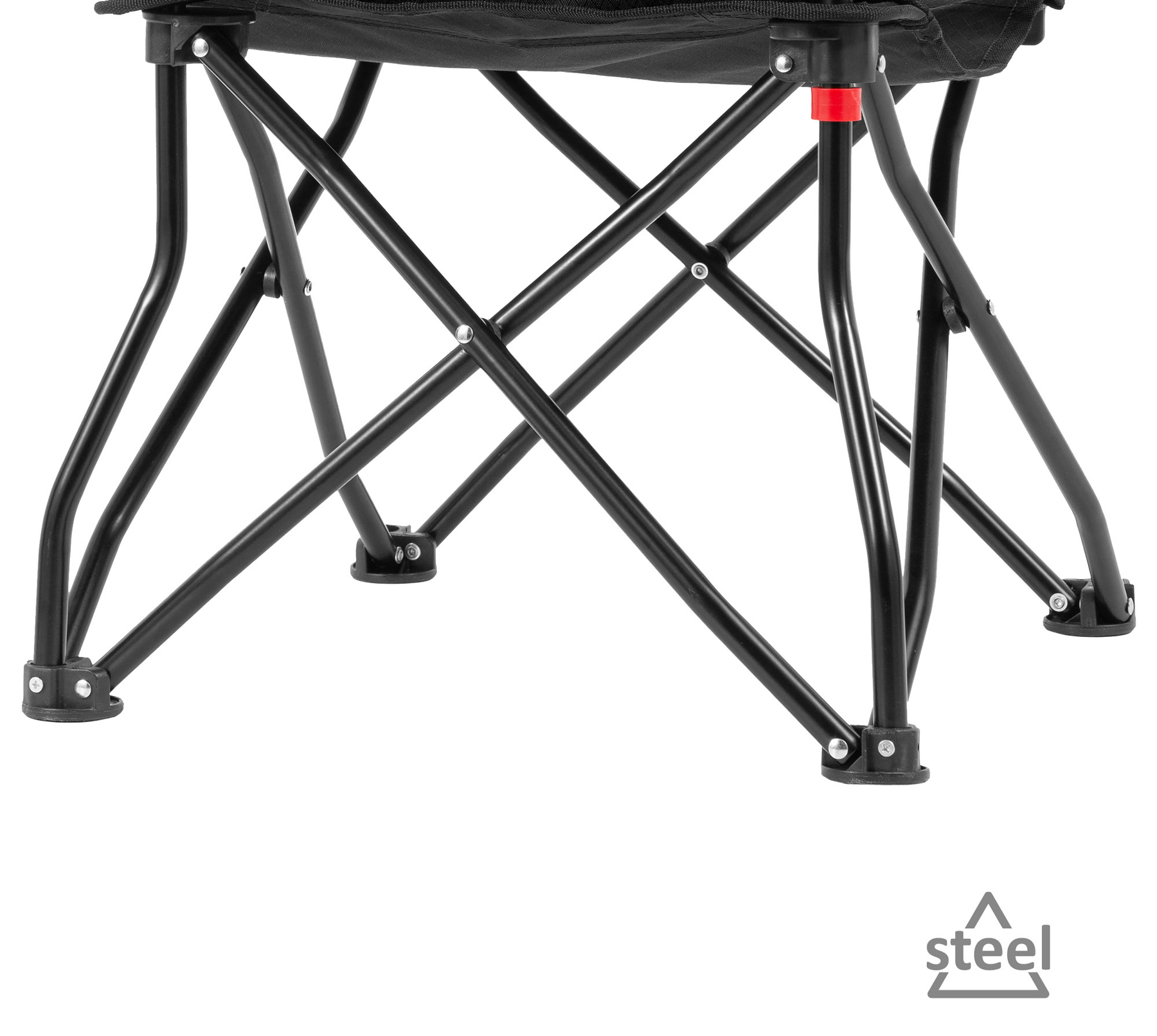 Klappstuhl mit speziellem, patentiertem Rahmen, der ein Umkippen verhindert. Hergestellt aus pulverbeschichteten Stahlrahmen und Sitz aus widerstandsfähigem Polyestergewebe. Sehr leicht zu öffnen und zu schließen. Komplett mit Tragetasche.