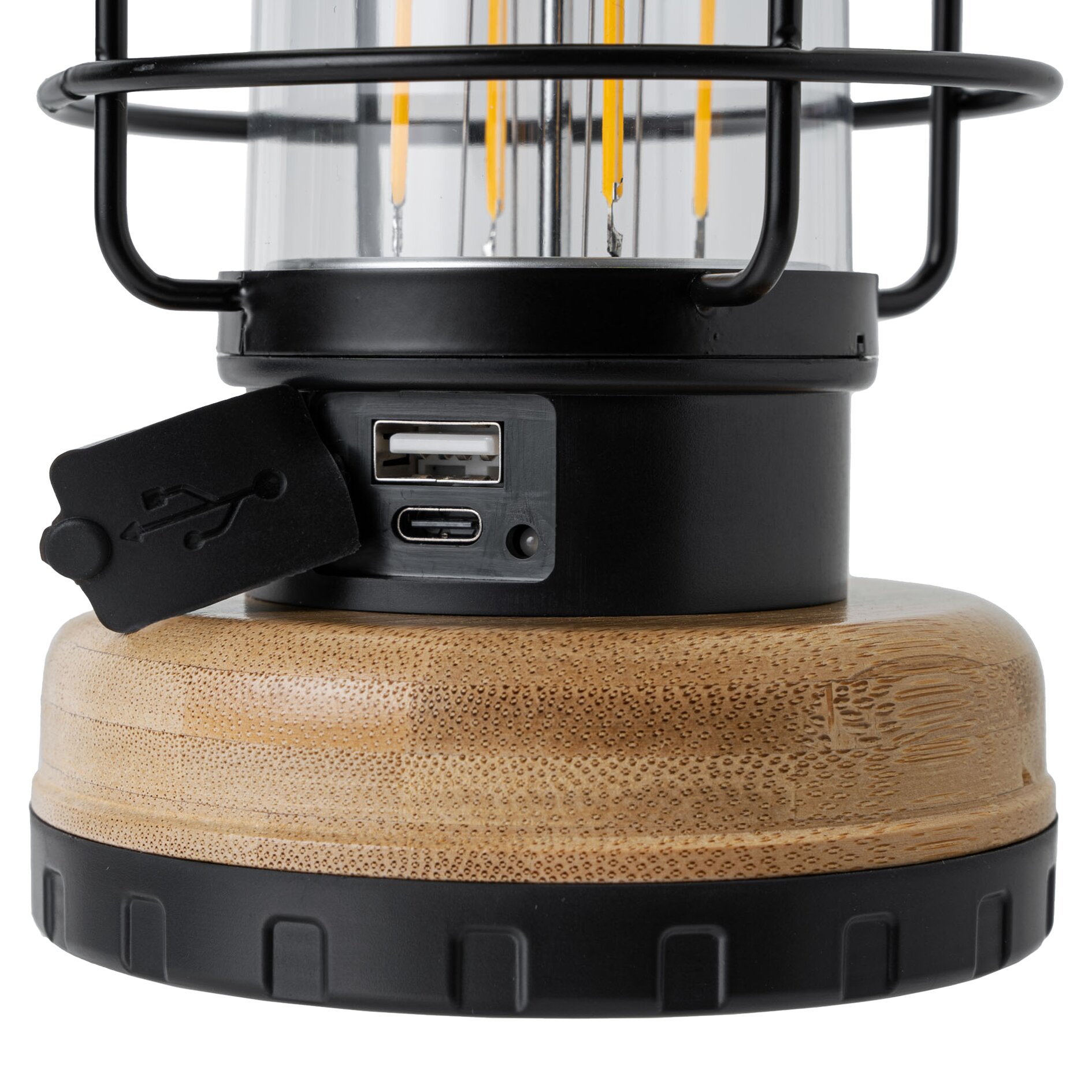 Wiederaufladbare Outdoor- und Campinglaterne mit professionellem Aussehen. Sorgt für angenehmes Licht dank warmweißer LED-Beleuchtung. Ausgestattet mit 2 Lichtintensitätsstufen und einem transluzenten Kunststoffschirm. Mit praktischem Stahlgriff zum Transportieren oder Aufhängen. Der integrierte Lithium-Ionen-Akku kann über das mitgelieferte USB-Kabel jederzeit wieder aufgeladen werden.