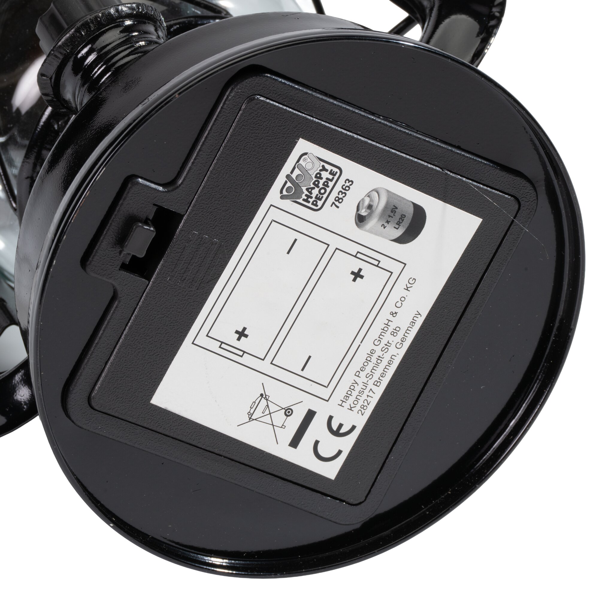 Die mit 12 stufenlos dimmbaren LEDs ausgestattete Leuchte vereint die klassische Optik einer Petroleumleuchte mit den Vorteilen der modernen LED-Technologie. Der Betrieb erfolgt über zwei Mono-Batterien (R20, nicht im Lieferumfang enthalten).