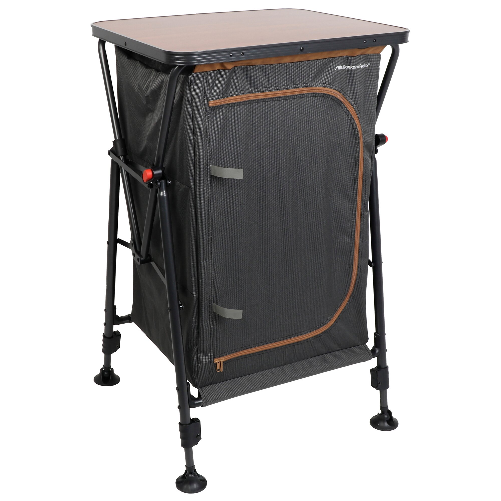 Die Schränke der dritten Generation zeichnen sich wie ihre Vorgänger durch eine durchdachte Gesamtkonstruktion, ansprechende Optik und einen attraktiven Preis aus. Gefertigt aus Aluminium und PVC-beschichtetem 600D-Ripstop-Material. Mit 4 höhenverstellbaren Beinen und großen Fußtellern ausgestattet, bieten die Schränke einen sicheren Stand. Die Fachböden können höhenvariabel eingelegt werden und stabilisieren den Schrank zusätzlich. Die vielen Ablageflächen bieten optimalen Stauraum. Dank des einzigartigen Klappmechanismus lassen sich die Schränke schnell in der mitgelieferten Transporttasche verstauen.