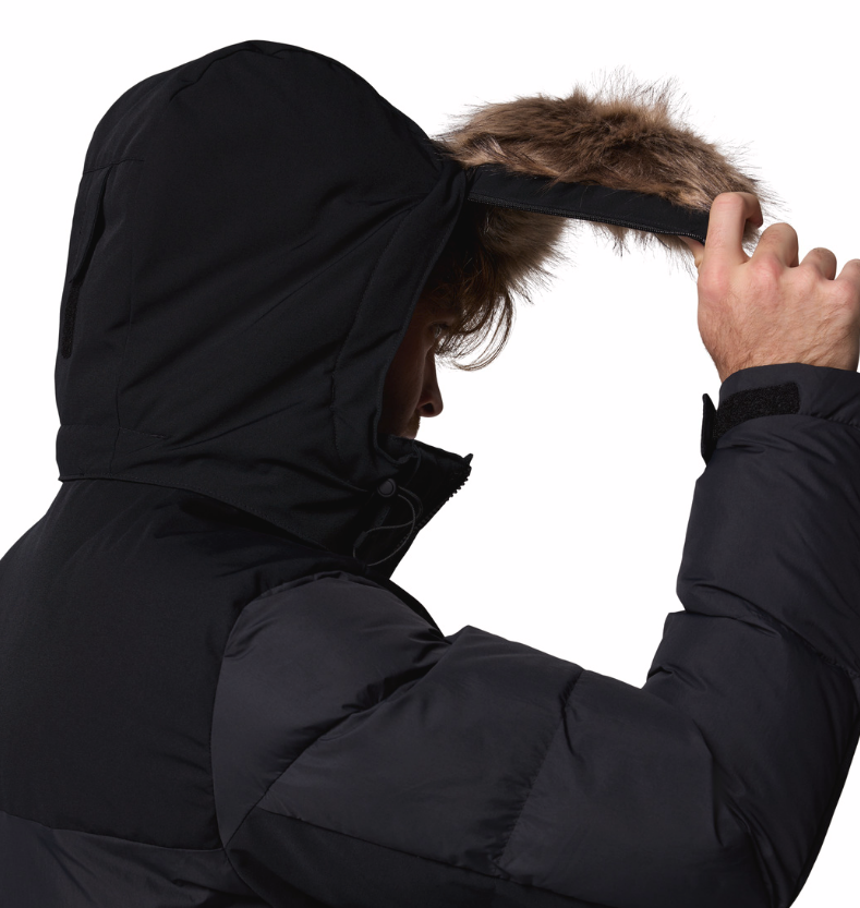 - Design: Verstellbare, abnehmbare Kapuze mit abnehmbarem Kunstfellbesatz, regulierbare Ärmelabschlüsse und Kordelzug im Saum für individuelle Passform