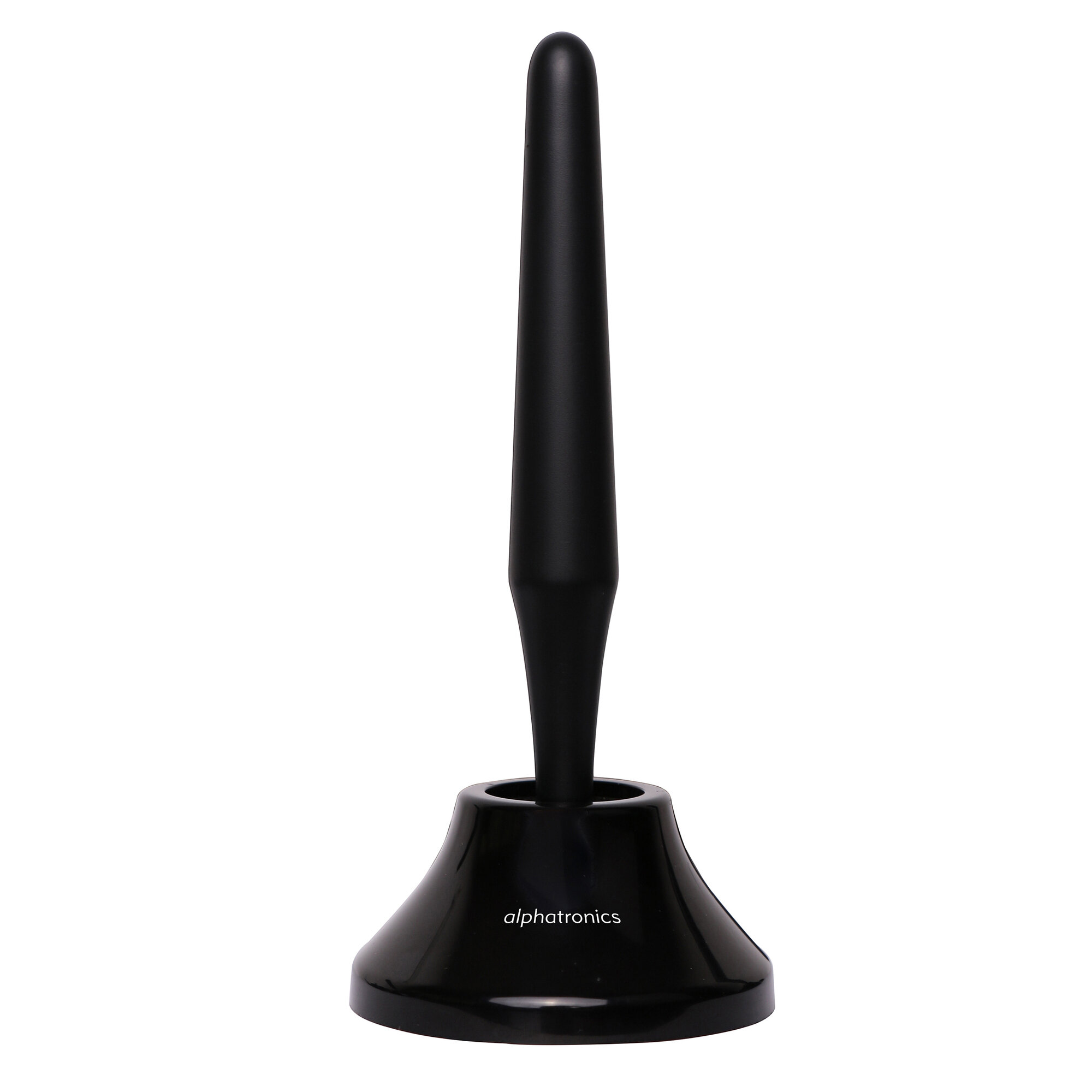 Aktive DVB-T/T2 Antenne für den Innenbereich. Der Magnetfuß erlaubt eine einfache Befestigung auf metallenen Flächen, eine Ausrichtung der Antenne ist nicht erforderlich. Die Stromversorgung (5 Volt) erfolgt direkt über den DVB-T Receiver/TV oder über 12 Volt (Anschlusskabel nicht im Lieferumfang enthalten). Maße ø 7 x H 16,2 cm, Gewicht 143 g.