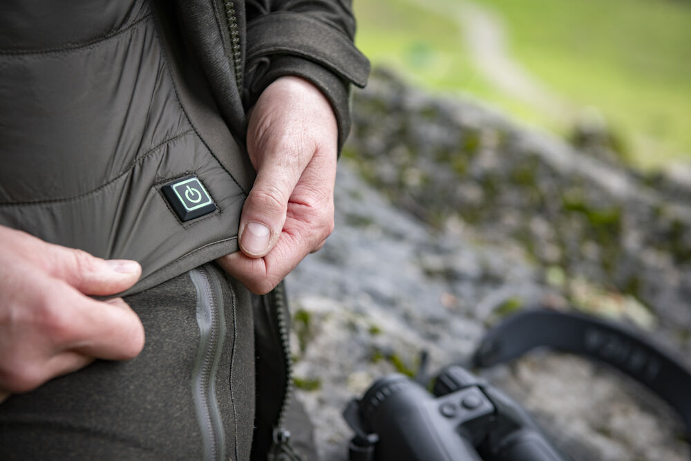 Die Deerhunter Lady Heat Innenweste hat ein integriertes HEAT-System, das auf der linken Seite der Weste durch einfaches Drücken aktiviert wird. Der Erwärmungsgrad kann angepasst werden. Die integrierte LED zeigt dabei die drei Wärmestufen der Weste an.