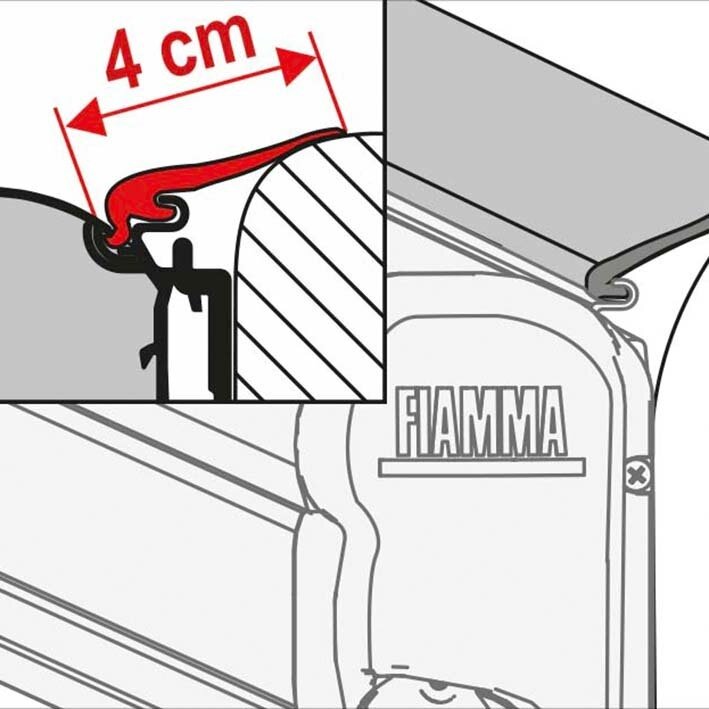 Abdichtung gegen eindringendes Wasser zwischen Markise und Fahrzeugwand. Wird installiert ohne die Markise abzubauen.