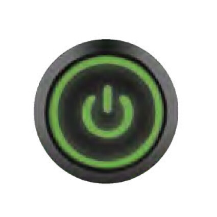 Druckschalter mit dezenter Funktionsbeleuchtung (grün). Mit diesem Schalter kann das Hochlastrelais vom Innenraum angesteuert und ein- bzw. ausgeschaltet werden. Ist der Unterspannungsschutz im Hochlastrelais aktiviert und löst dieser automatisch aus, wird dies durch Blinken des Schalters angezeigt.