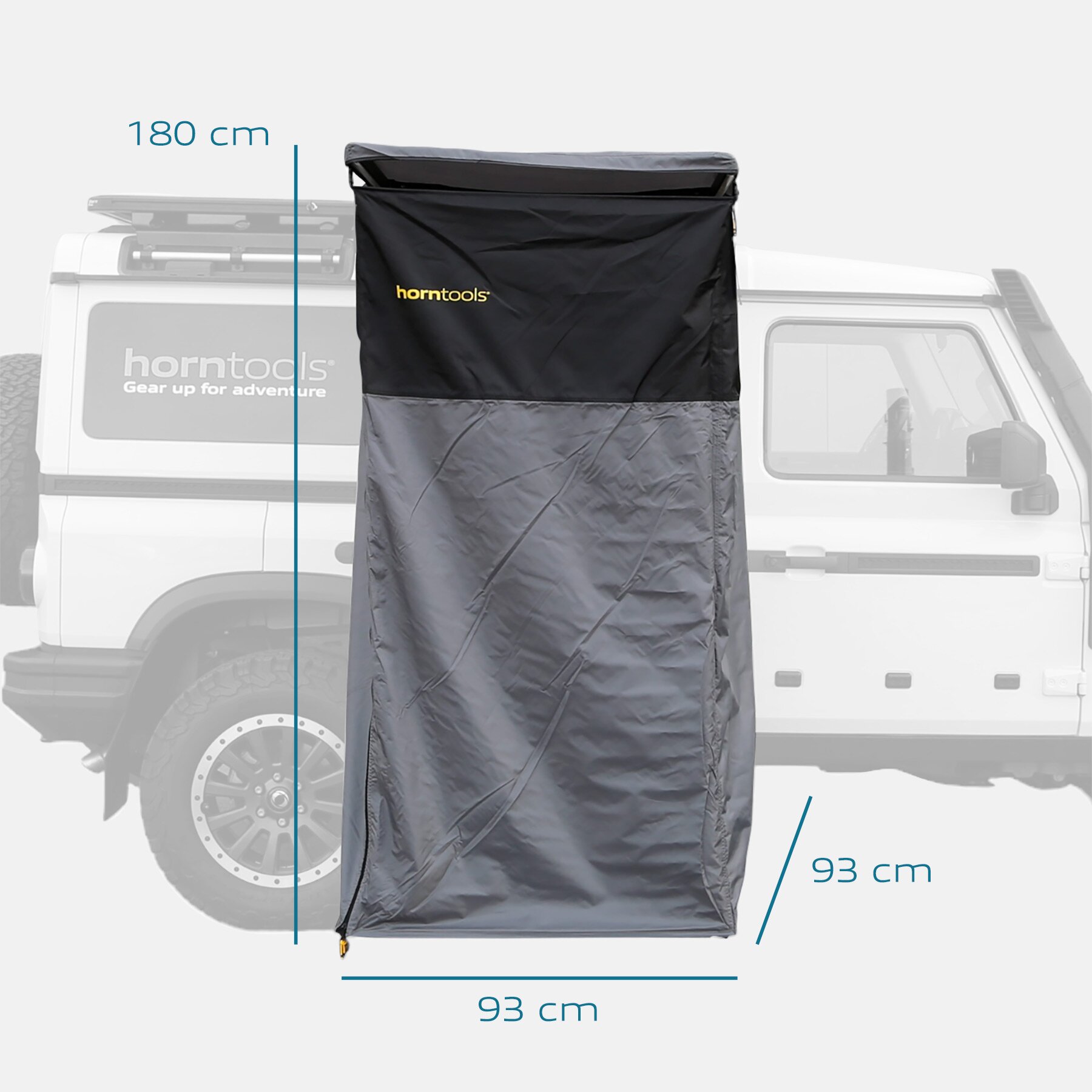 Ideal für Camping, Overlanding und Festivals. Befestigt am Dachträger, schnell einsatzbereit und stabil. Mit LED-Leisten, Taschen, Durchreiche und Vorhang. Inkl. Halterungen und Montagematerial.