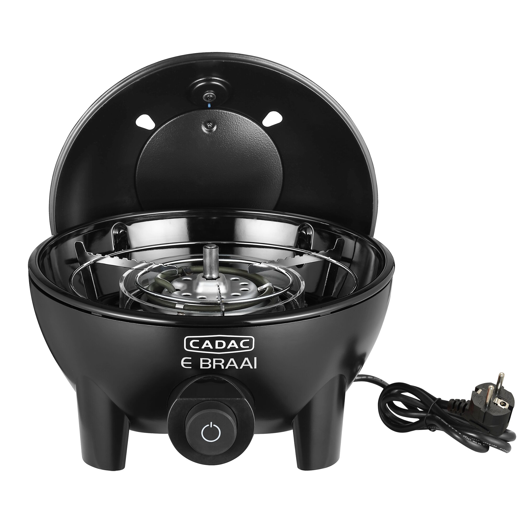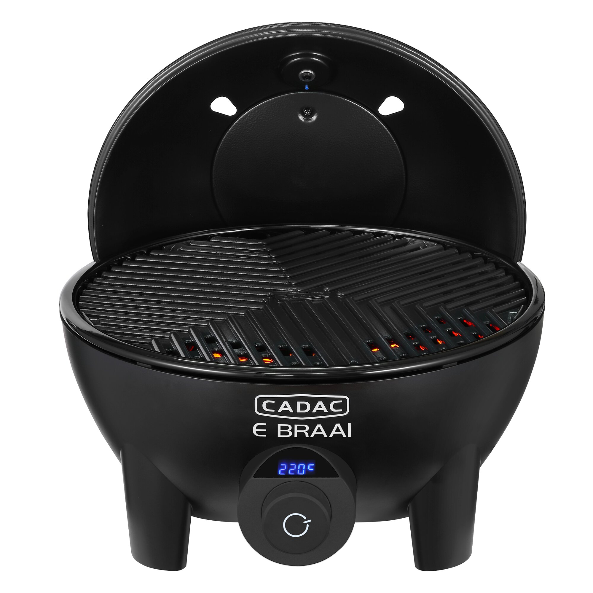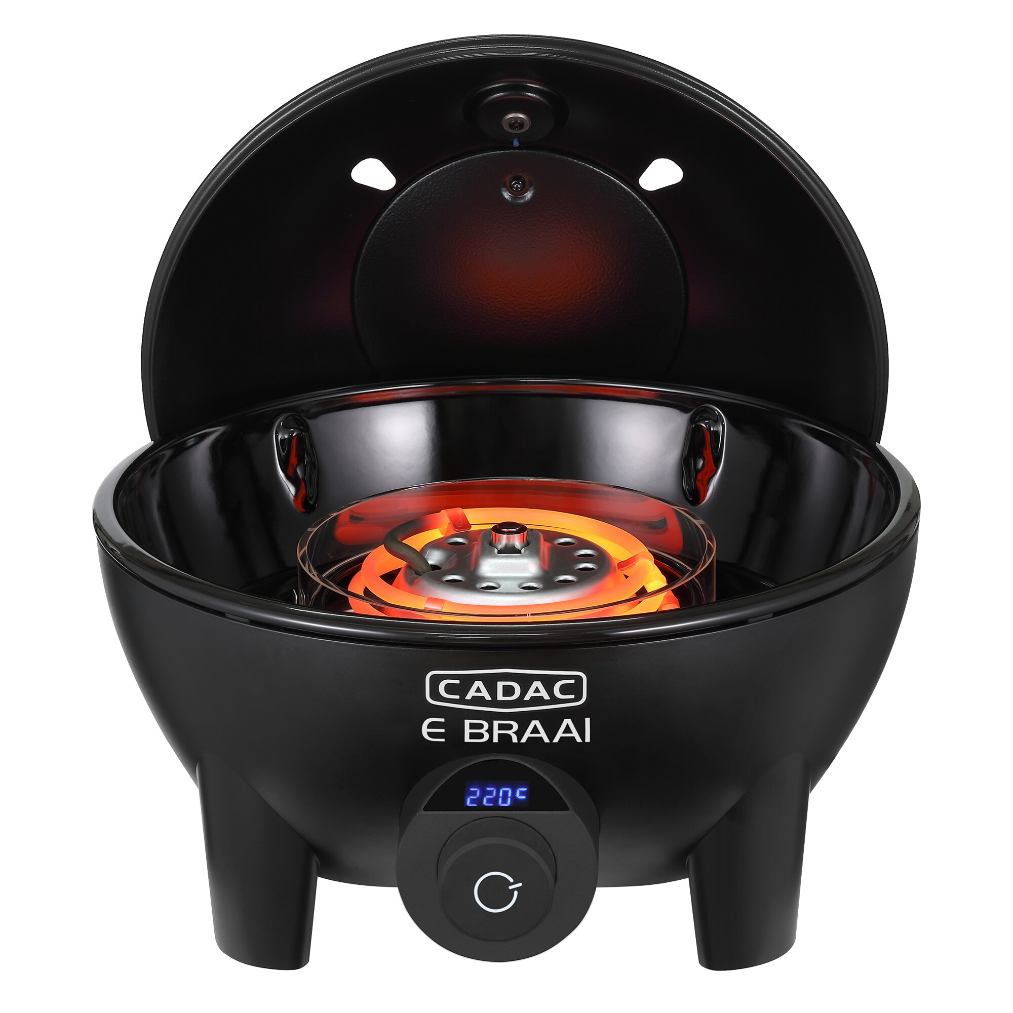 Der E-Braai ist ein elektrischer Grill mit präziser Temperatureinstellung. Die 2,3-kW-Heizspirale sorgt für eine schnelle Aufwärmzeit. Ein abnehmbarer Glasring schützt die Spirale vor abtropfendem Fett. Dank der einzigartigen „Spot-on-Grilling-Technology“ wird die Temperatur direkt am Grillrost gemessen (statt unter dem Deckel). Die gewünschte Temperatur kann auf dem digitalen Display exakt eingestellt und konstant gehalten werden. Die Temperatur des E-Braai ist stufenlos von 70 bis 270 Grad regelbar, sodass er auch für langsames Garen geeignet ist. Die abnehmbare Fettpfanne ist spülmaschinenfest und leicht zu reinigen. Der Deckel enthält vier Lüftungslöcher für gute Luftzirkulation und gleichmäßige Wärmeverteilung.