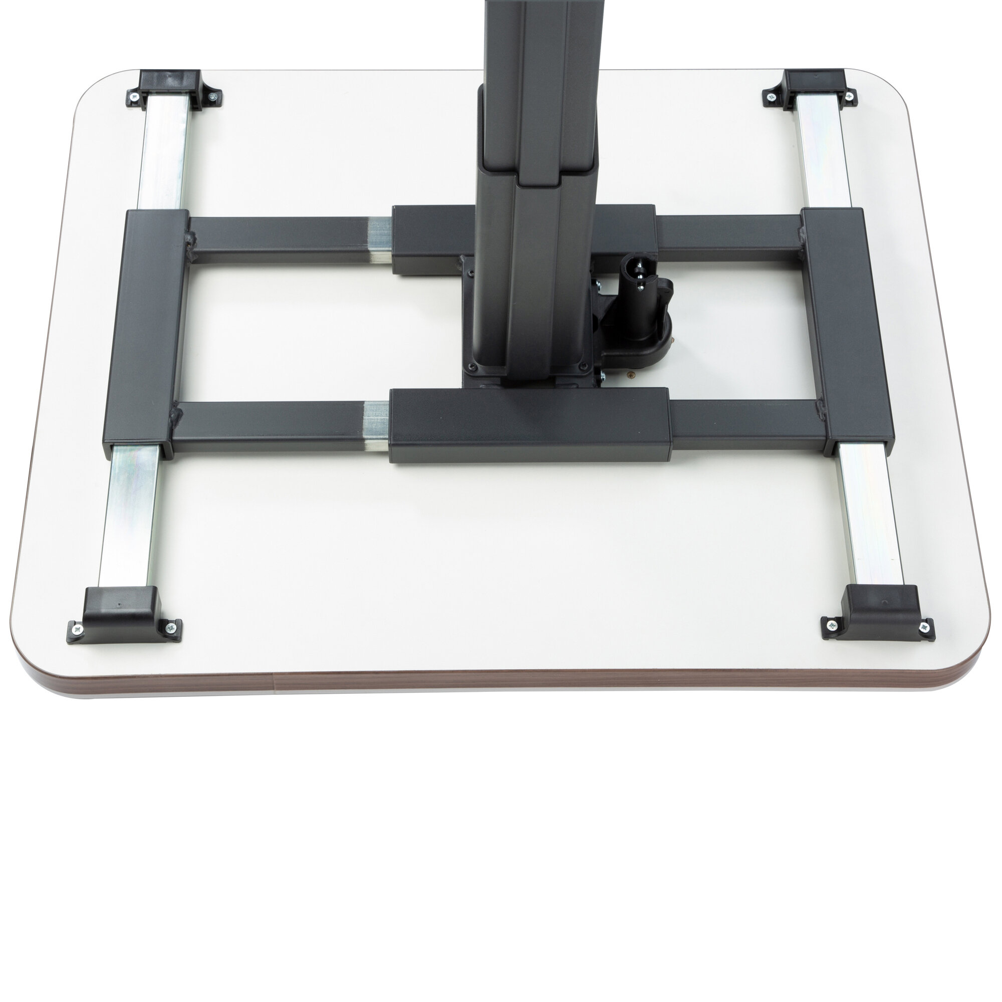 Dank des Klick Klack Systems kann der Tisch mittels Gasdruckfeder in 2 Positionen gebracht werden. Höhenverstellbar um 37 cm. Die obere Höhe bis Unterkante Tischplatte beträgt 71,2 cm. Untere Höhe bis Unterkante Tischplatte ist 34,2 cm. Quer- und Längsverschiebung um 27 und 23 cm. Tischverdrehung um 360° möglich. Sockelplatte mit 6 Löchern zur Befestigung auf dem Fahrzeugboden. Einstellbar auf 342 und 712 mm. Tischplatte und Montageuntergrund sind nicht im Lieferumfang enthalten.