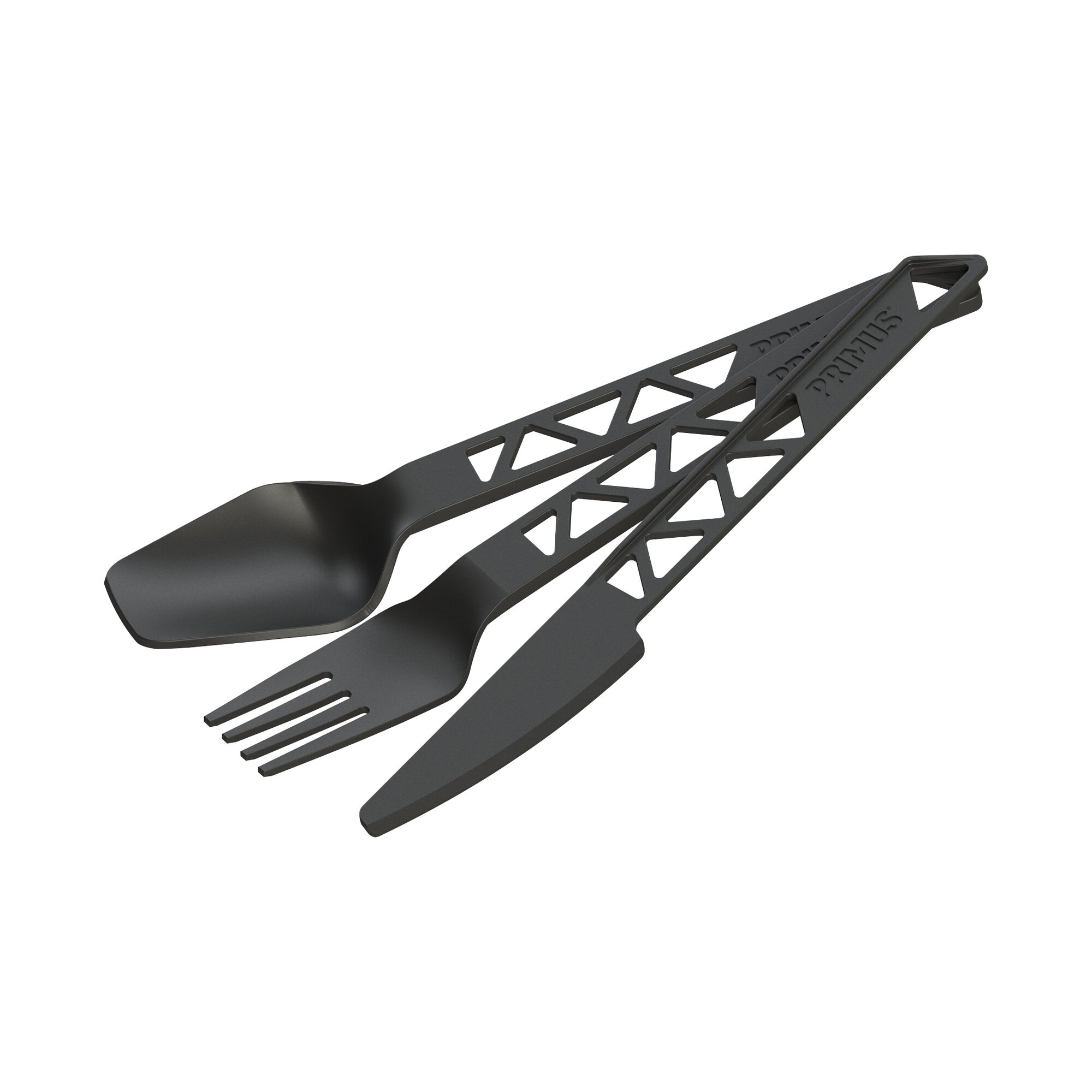 Gabel, Messer und Löffel aus dem BPA-freien Kunststoff Tritan®. Ein echtes Federgewicht! Mit praktischem Packriemen.