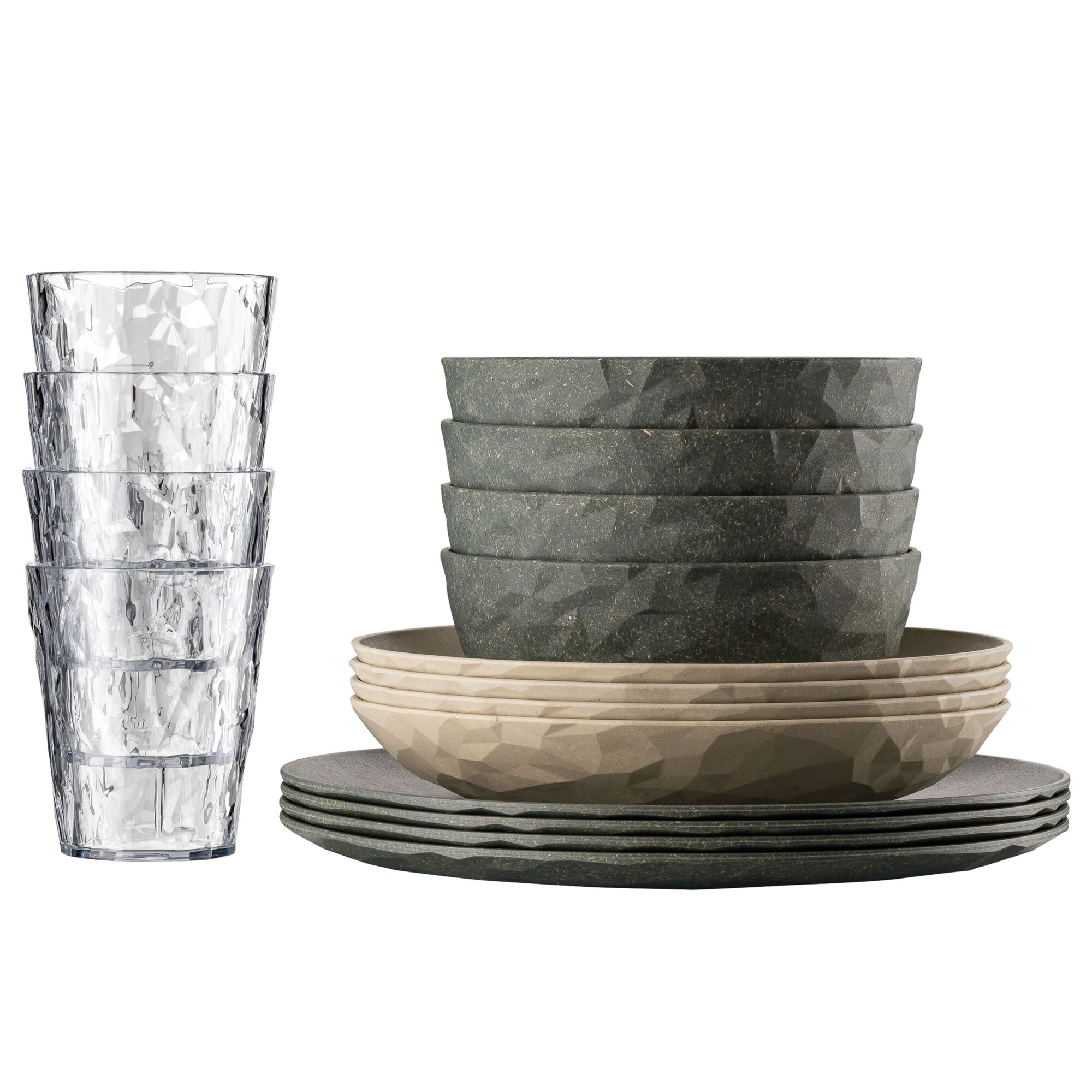 Im hochaktuellen Facettendesign. Die leichten Geschirrteile sind extrem robust, pflegeleicht, kompakt stapelbar und damit besonders platzsparend zu verstauen. Spülmaschinenfest und 100 % CO₂-neutral! BPA- und melaminfrei!