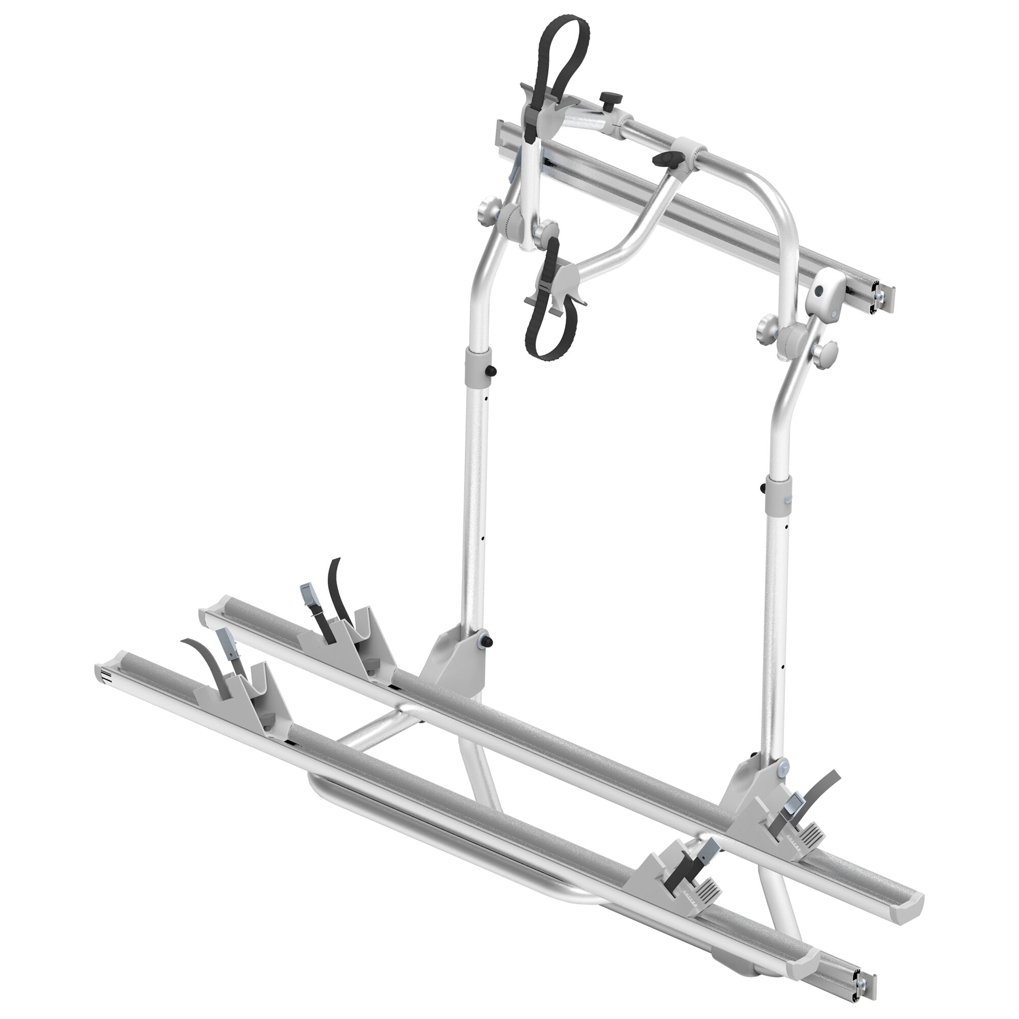 - Lieferumfang Fahrradträger: 2 Befestigungskrallen, 2 Fahrradschienen, 2 Spannschienen, 4 Radschalen mit 4 Zurrriemen