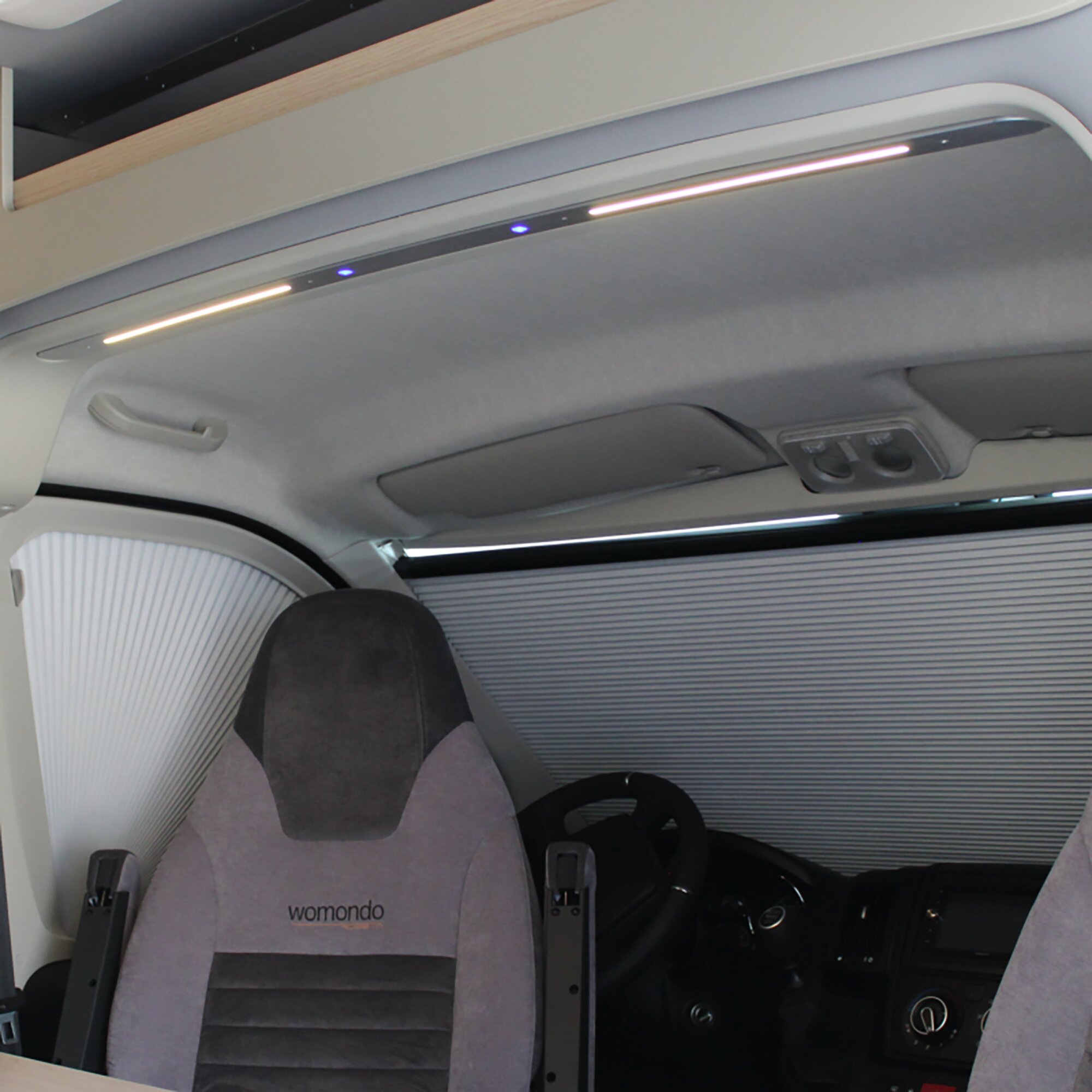 Die PCS Fahrerhausbeleuchtung passt ideal zum Fiat Ducato, Peugeot Boxer und Citroën Jumper, fügt sich mit ihrem schlanken Design in die B-Säulenverkleidung ein und erzeugt ein angenehmes, warmweißes Licht (3000 K). Sie nutzt energieeffiziente LED-Technik, die langlebig und über Touch-Sensoren stufenlos dimmbar ist, wobei Fahrer und Beifahrer die Helligkeit unabhängig voneinander einstellen können. Die Installation ist unkompliziert, alle benötigten Montagematerialien sind enthalten.