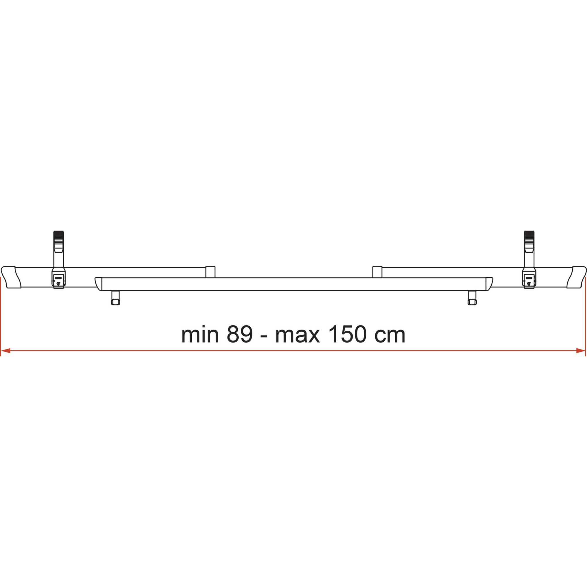 Teleskopierbare Schiene mit 2 Quick Safe Riemen. Variabel einstellbare Breite für fast alle Modelle. Bitte achten Sie auf das Gleichgewicht bei der Beladung. Nicht für E-Bikes geeignet.