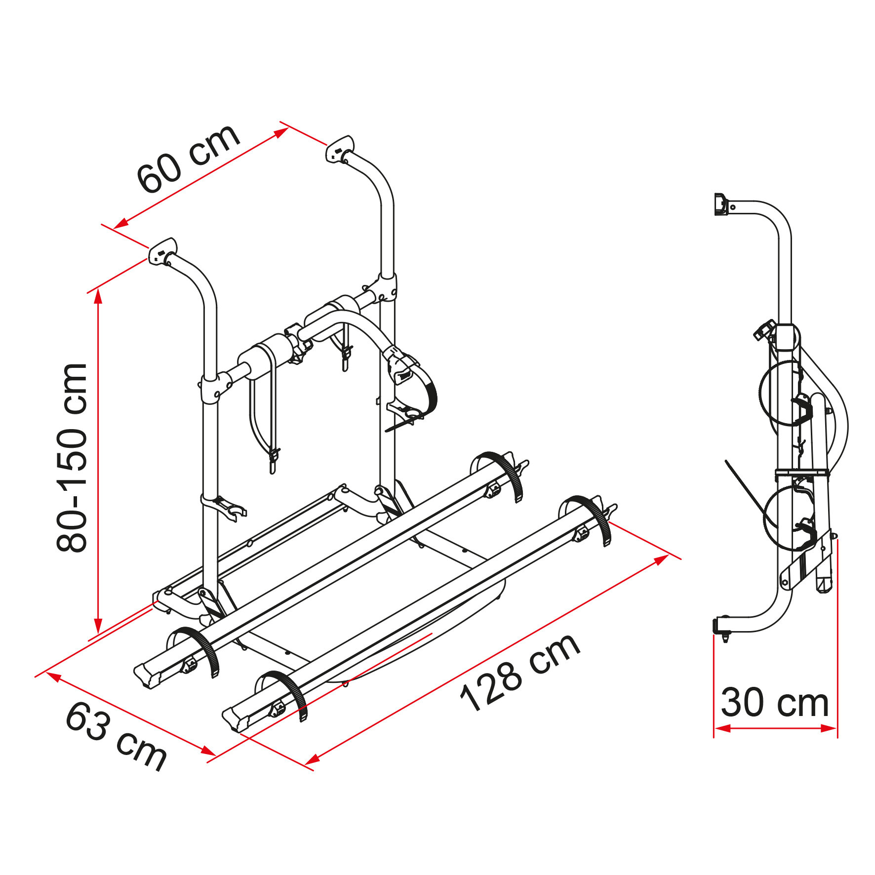 Universeller Fahrradträger, für die meisten Reisemobilmodelle geeignet. Passt sich durch die längere flexible Einstellung in der Höhe an die gängigsten Fahrzeuge an. Die solide und leichte Struktur aus eloxiertem Aluminium kann von 80 cm auf 150 cm reguliert werden. Der UL wird an die Heckwand des Wohnmobils angebracht.