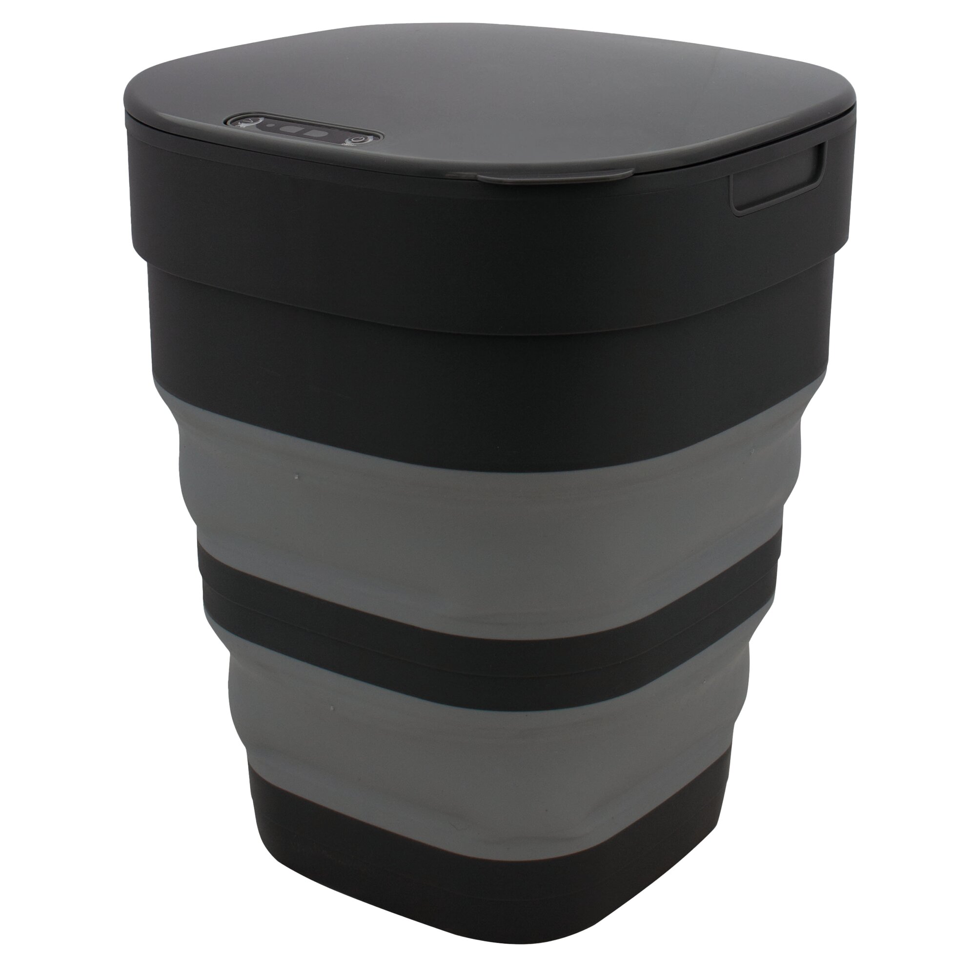 Praktischer, faltbarer Abfalleimer mit Infrarotsensor. Dieser sorgt dafür, dass sich der Eimer automatisch öffnet, sobald Sie Ihre Hand in einem Abstand von 20 cm über den Eimer halten. Er schließt sich selbstständig nach ca. 5 Sekunden. Ideal für Camping, Boote oder zu Hause. Wird mit zwei AA-Batterien betrieben (nicht enthalten).