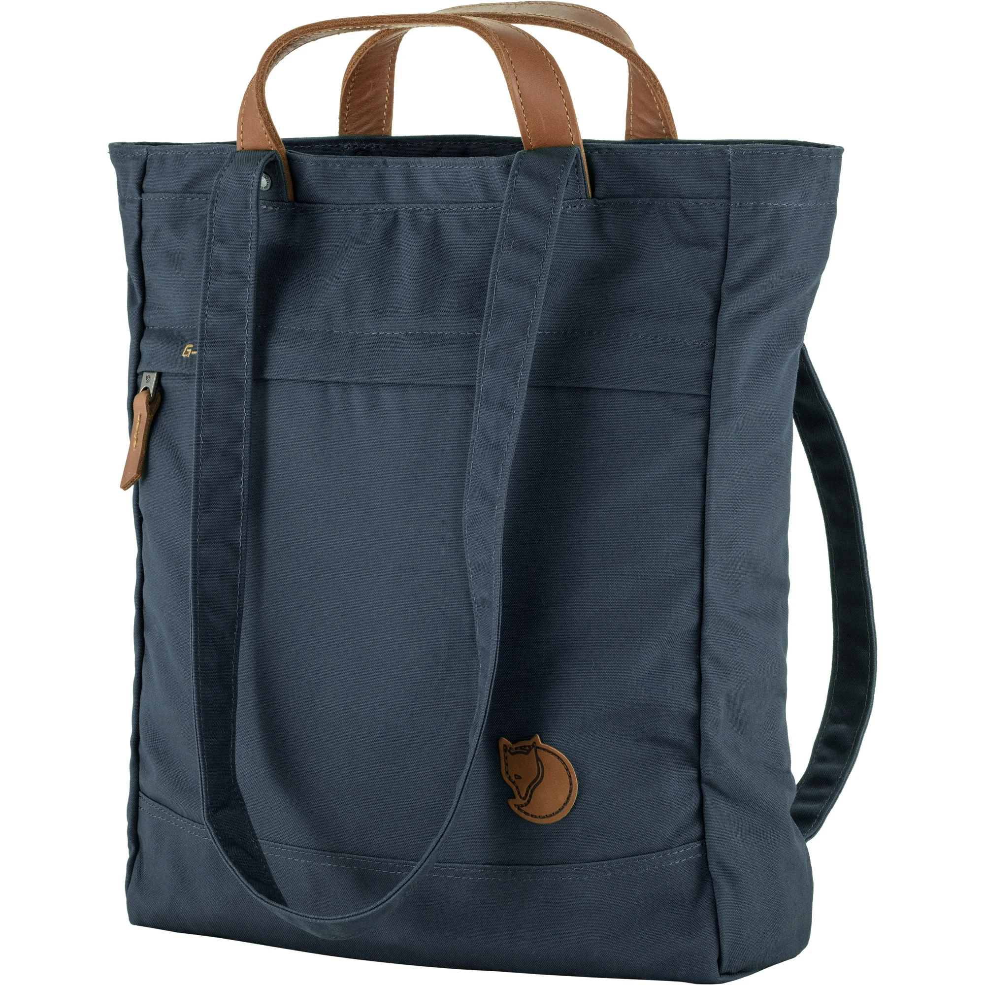 Leichte, flexible Tasche, perfekt für kleine Einkäufe, Badesachen und Dinge, die man während des Tages bei sich tragen möchte. Aus einer kräftigeren Variante des G-1000-Gewebes von Fjällräven. Besonders strapazierfähig durch doppellagigen Stoff am Boden. Der Reißverschluss sorgt dafür, dass nichts verloren geht. Eine kleine Sicherheitstasche auf der Innenseite fasst Schlüssel, Brieftasche und andere Dinge, die man sicher verstauen möchte. Außen befindet sich eine Tasche mit Reißverschluss. Lange Schulterriemen aus Textilgewebe und kürzere Traggriffe aus Leder. Die Schulterriemen lassen sich verstellen, so dass die Tasche auch auf dem Rücken getragen werden kann. Praktisch auf Reisen. Hält ewig und ist in leerem Zustand äußerst platzsparend.
