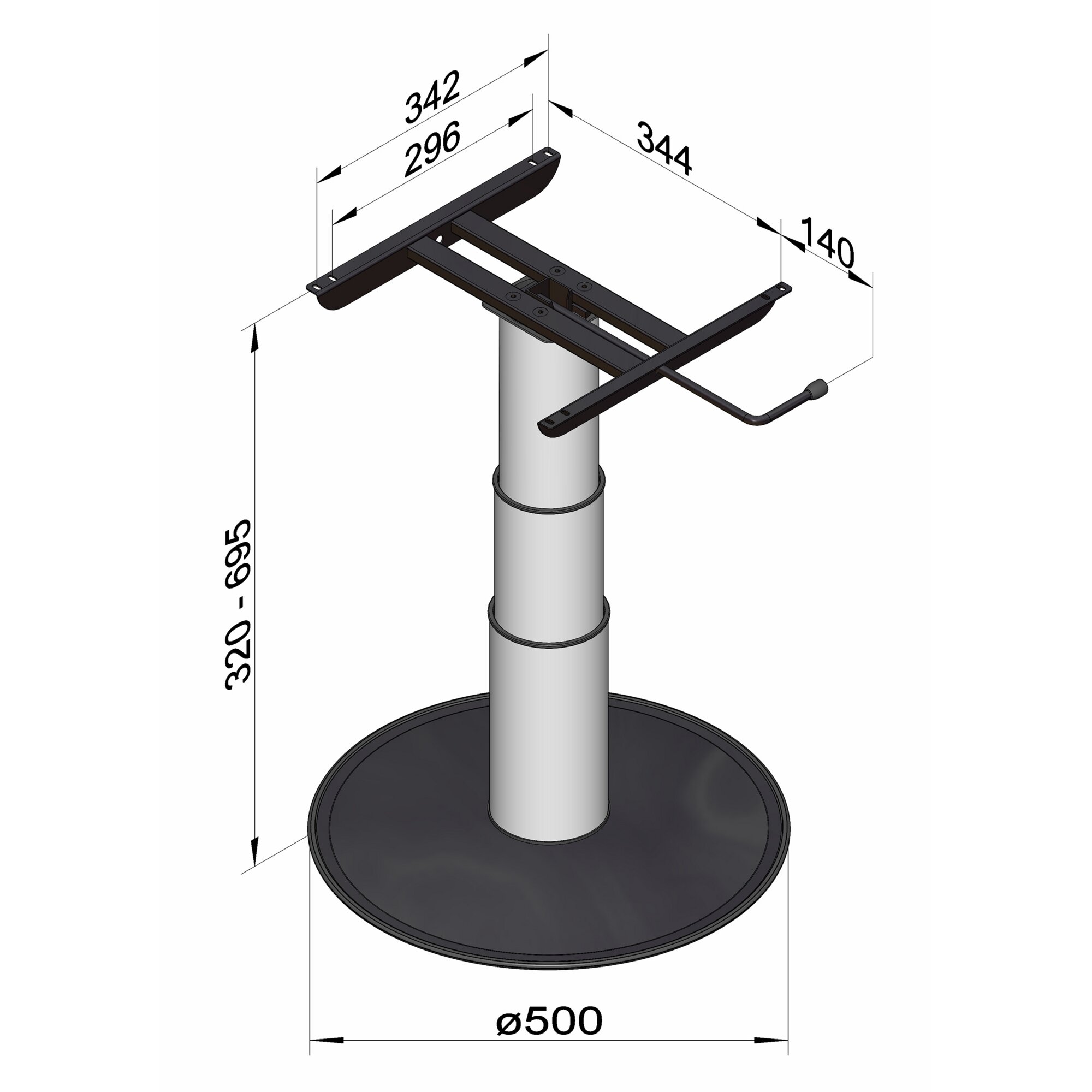 Ideal für die Nutzung im Wohnwagen. Höhenverstellbar um 37,5 cm. Untere Höhe bis Unterkante Tischplatte 32 cm. Obere Höhe bis Unterkante Tischplatte 69,5 cm. Einstellbar auf 320 und 695 mm. Tischplatte ist nicht im Lieferumfang enthalten.