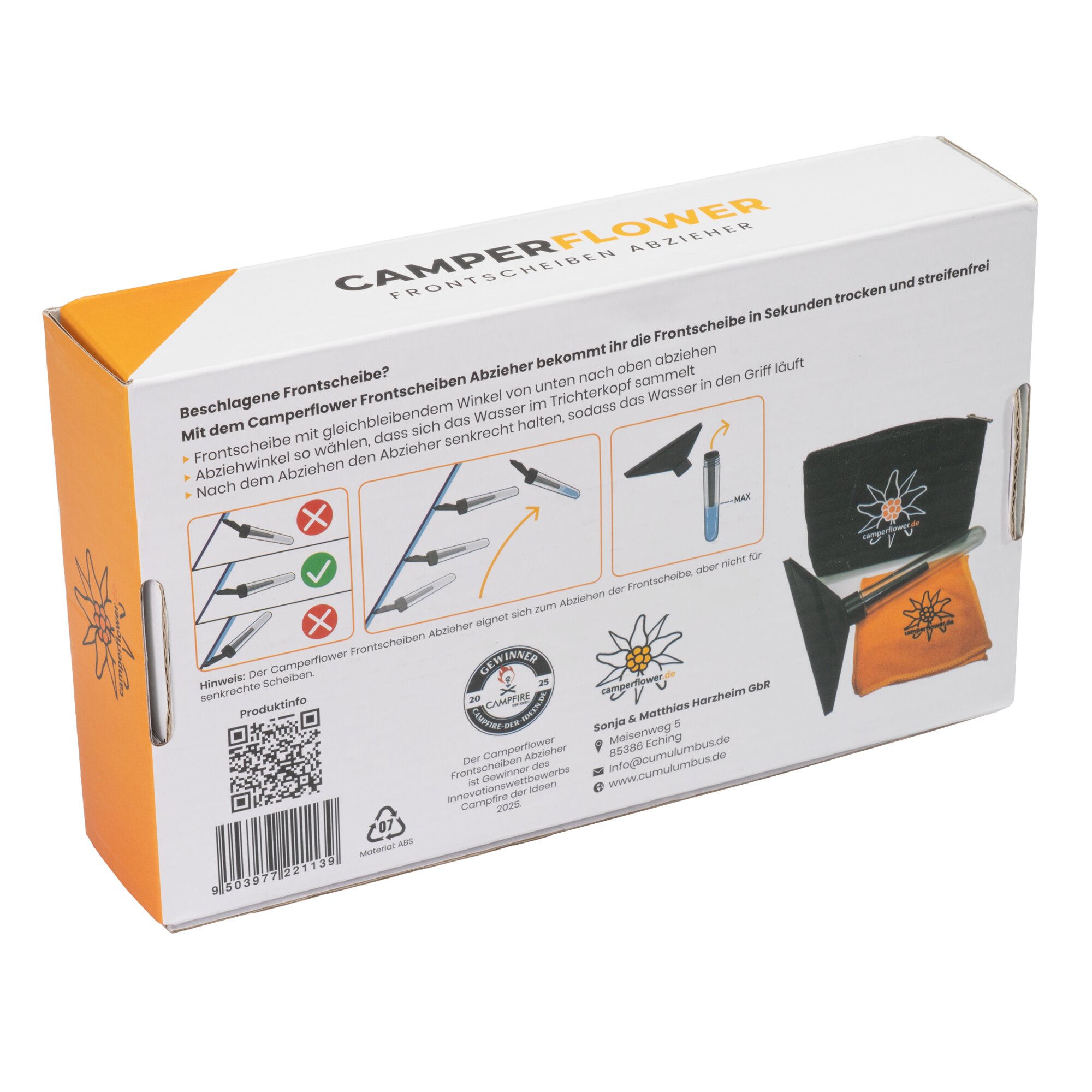 Sammelt Kondenswasser beim Abziehen im hohlen Griff – kein Tropfen im Cockpit! Trockene, streifenfreie Scheibe in Sekunden. Zerlegbar, platzsparend, ideal für Vans, Kastenwagen & PKW (nicht für Vollintegrierte).