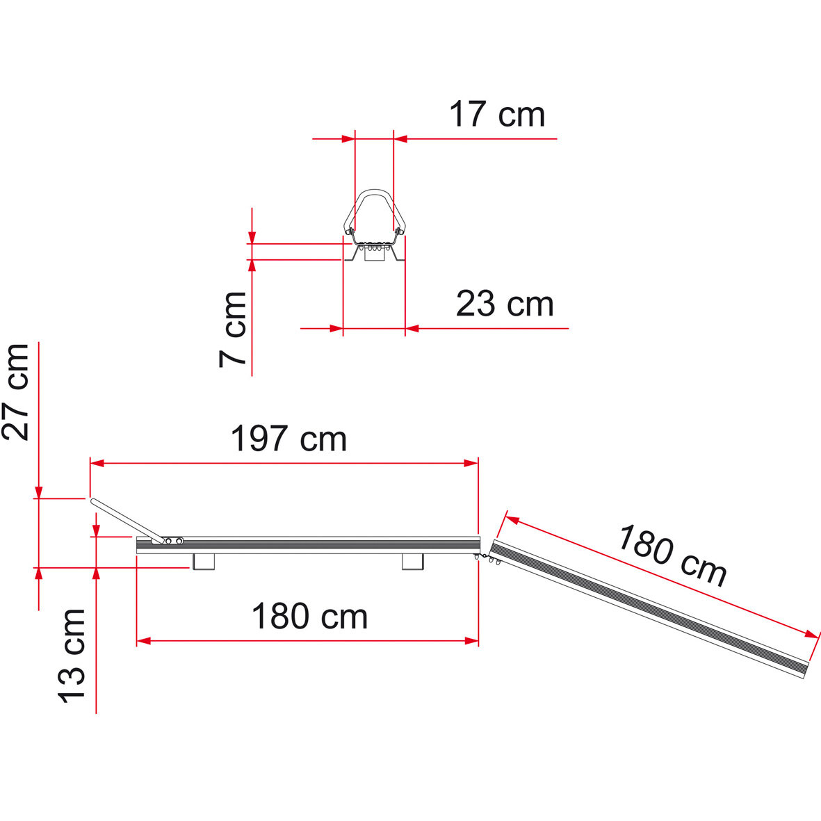 Das Carry Moto System für Wohnwagen und Reisemobile mit Heckgarage. Besteht aus einer Motorradschiene (L 180 cm x B 14 cm) und einer Auffahrschiene (L 180 cm), die beim Beladen miteinander verbunden werden, um ein Wegrutschen zu verhindern. Aus stabilem und eloxiertem Aluminium. Die Motorradschiene hat vorne einen beweglichen Haltebügel und 2 stabile Riemen, um das Motorrad während der Fahrt sicher zu halten.