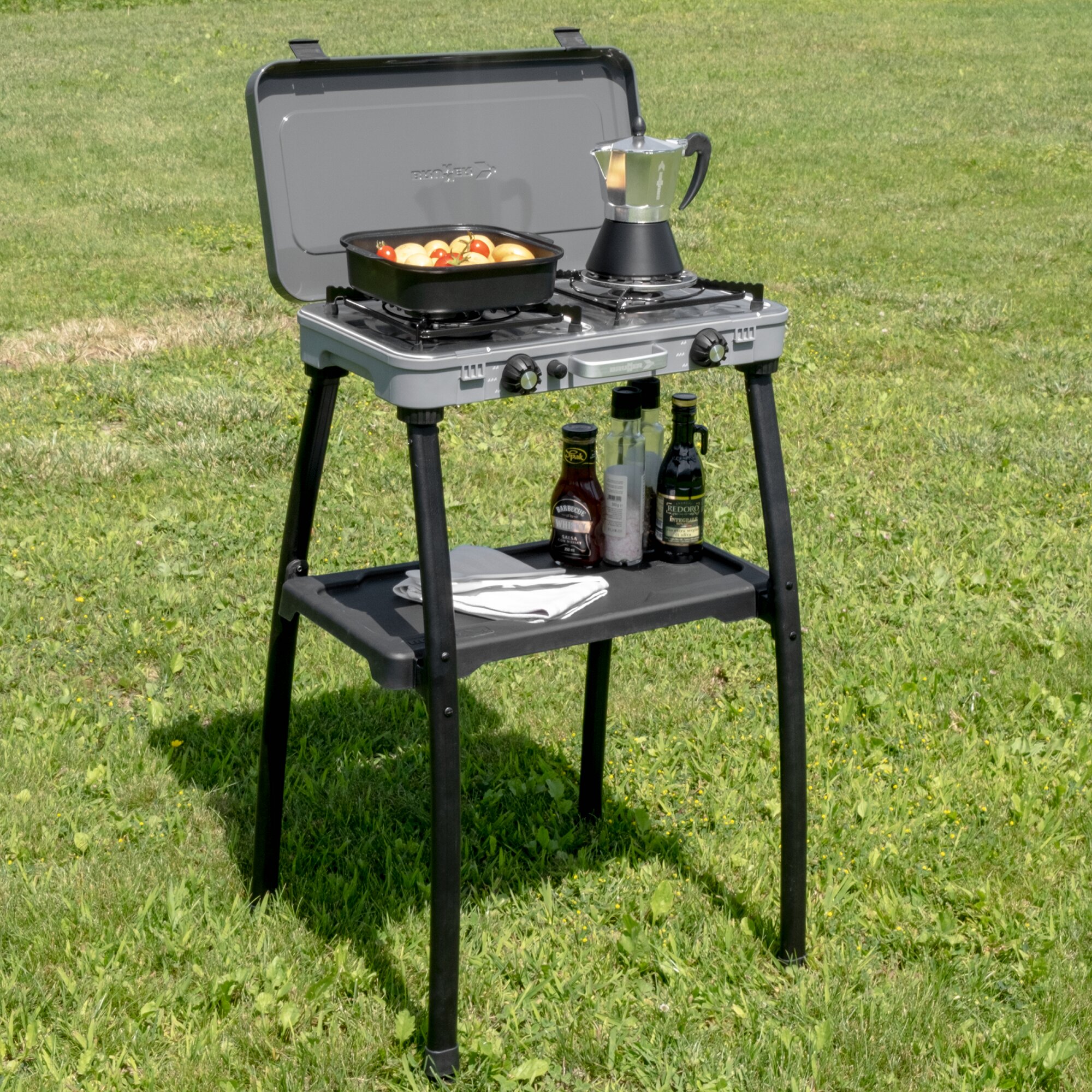 Der Devil Kookmaster Standalone verfügt über die einmalige Funktionalität des Devil Kookmasters. Mit seinen vier stabilen Beinen und einem praktischen Tablett macht dieser Küchenhelfer das professionelle Kochen zum Outdoor-Erlebnis. Der Devil Kookmaster Standalone wird mit einer glatten und einer geriffelten Grillplatte geliefert.