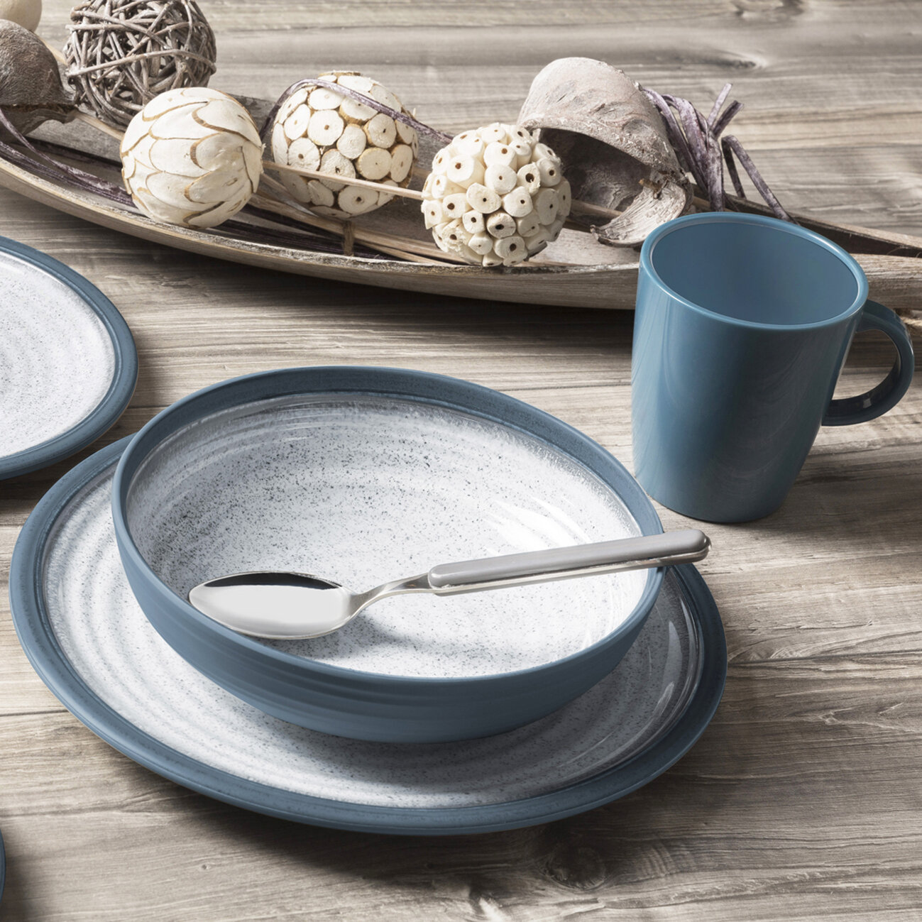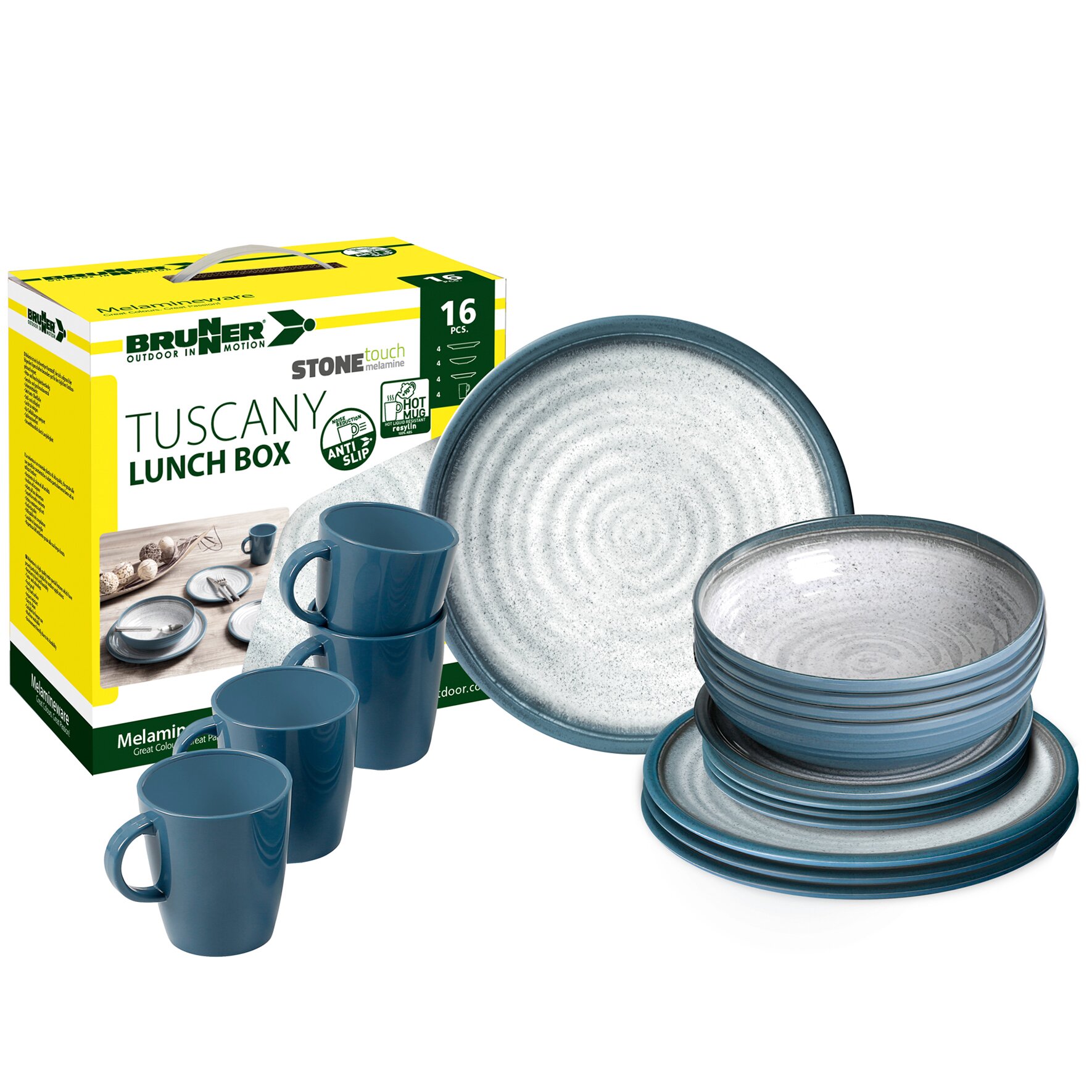 Die Geschirrserie Tuscany hat eine schöne Optik und Haptik in einer ansprechenden Farbe. Die Teile haben eine Anti-Slip-Unterseite und die Henkelbecher sind aus Resylin.