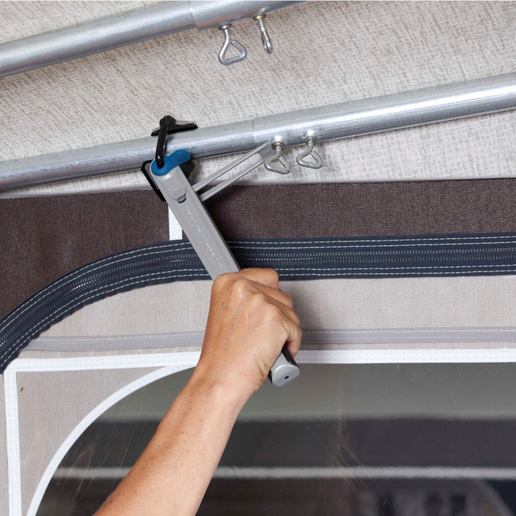 Der Gestängespanner von Isabella ermöglicht es, die Zeltplane korrekt abzuspannen. Somit werden Windgeräusche vermieden und eine höhere Stabilität sowie eine längere Lebensdauer des Vorzelts erreicht. Geeignet für alle Gestänge von ø 22 bis 32 mm.