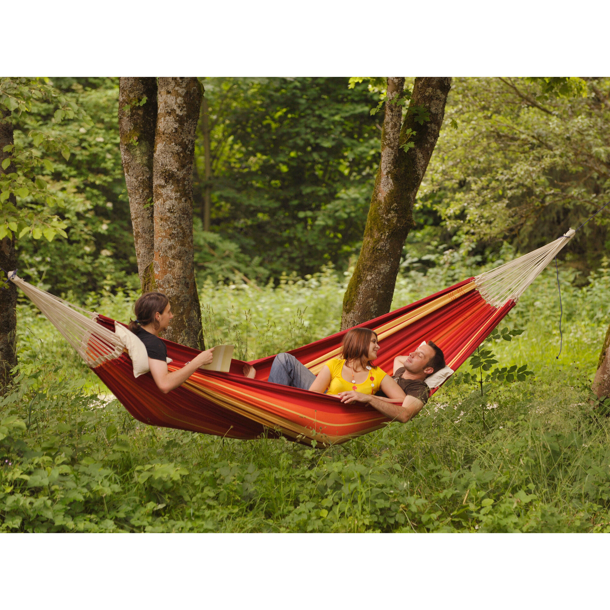 Die wahrscheinlich größte Hängematte der Welt! Gigante – die perfekte Verbindung zwischen zwei Aufhängepunkten, in der problemlos mehrere Leute bequem liegen können. Gigantisch! Aufgrund der Größe nicht mit unseren Gestellen kombinierbar.