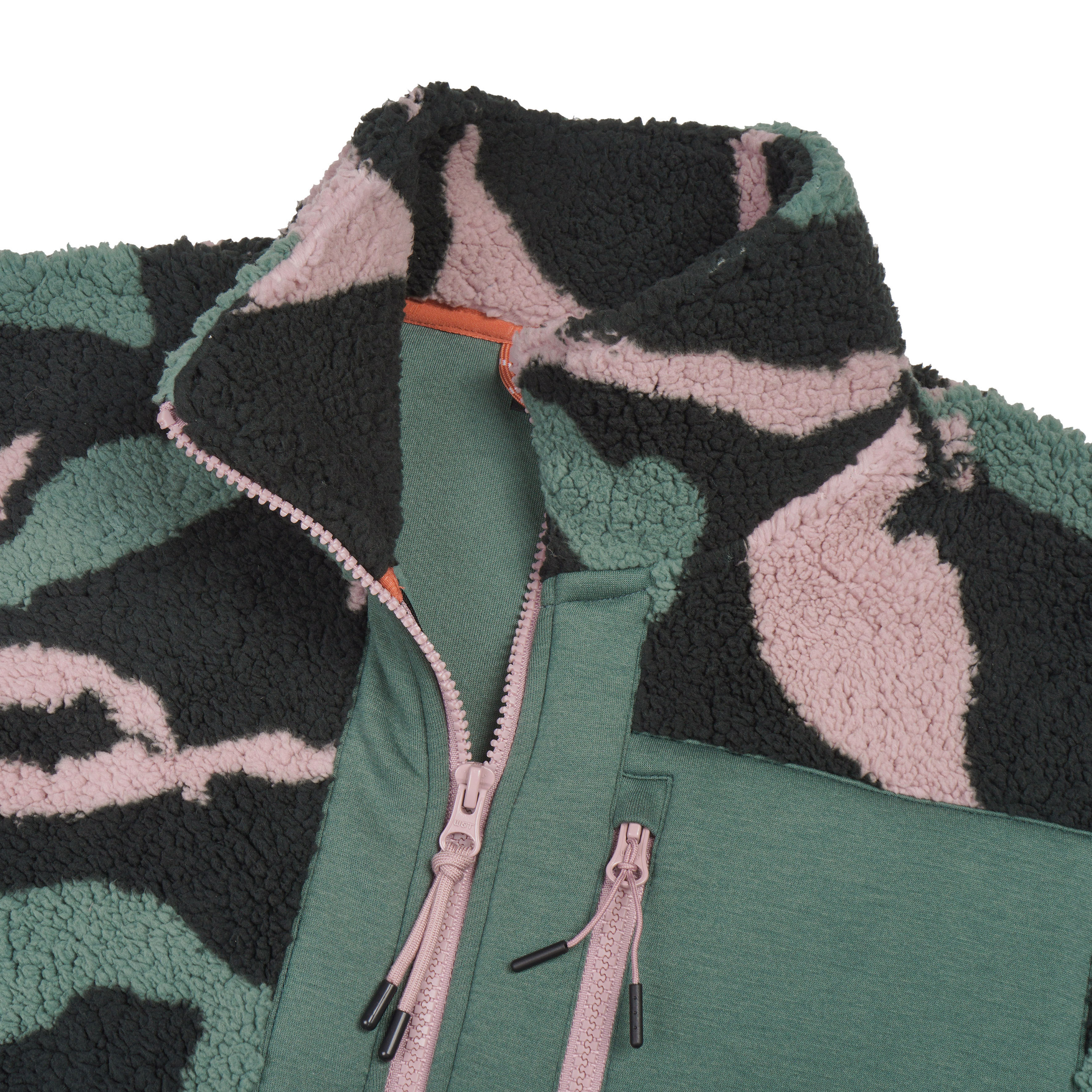 Voll im Trend mit der kuscheligen Teddyfleecejacke mit Overall-Print!