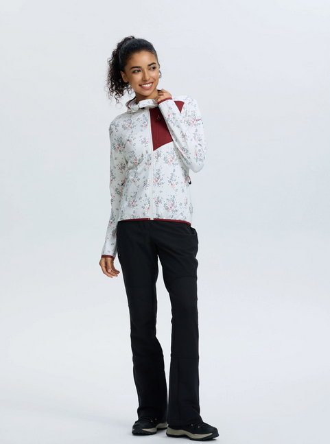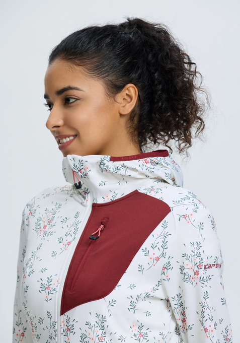 Verspielter Midlayer mit Kapuze für Damen - Atmungsaktiv, schnell trocknend - ideal für Freizeitaktivitäten wie Skitouren oder Wandern.