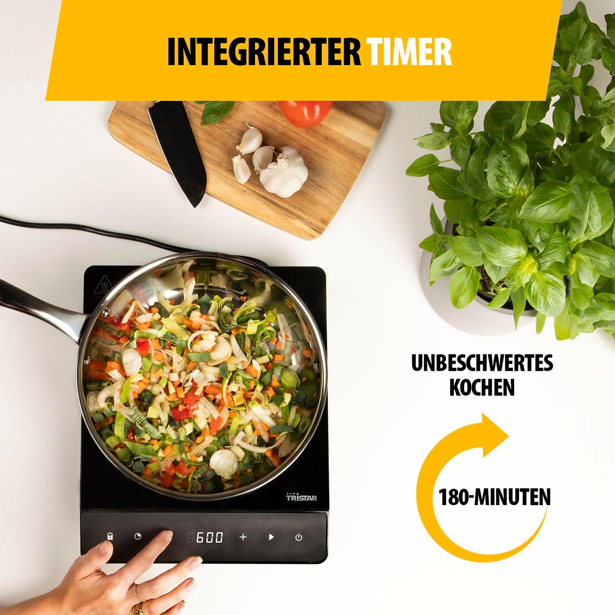 Diese Induktionskochplatte überzeugt mit 2000 W Leistung und 10 Leistungsstufen für präzises Kochen. Ihre Sicherheitsfunktionen umfassen automatische Topferkennung, Abschaltautomatik, Überhitzungsschutz, Sperrfunktion und rutschfeste Füße. Über das LCD-Display und Touchpanel können Sie Temperatur, Leistung und den bis zu 180 Minuten einstellbaren Timer steuern. Inkl. schwarzem Sicherheitsglas.