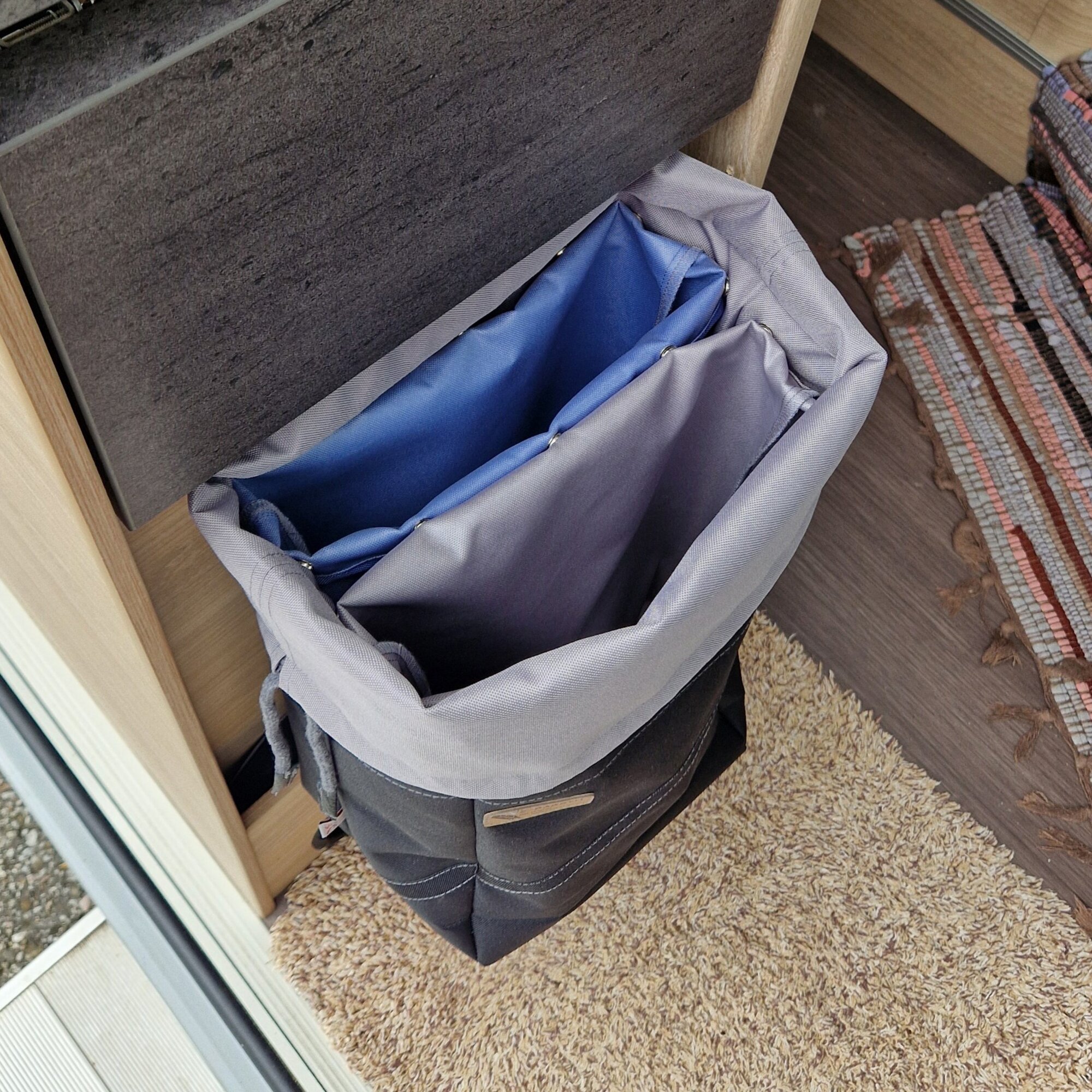 Robuster, leicht zu reinigender Innenbeutel für das Z-Saggerl L. Mit Druckknöpfen sicher fixierbar, Henkel verschwinden zwischen Beutel und Außenmaterial. Wiederverwendbar für weniger Müll.