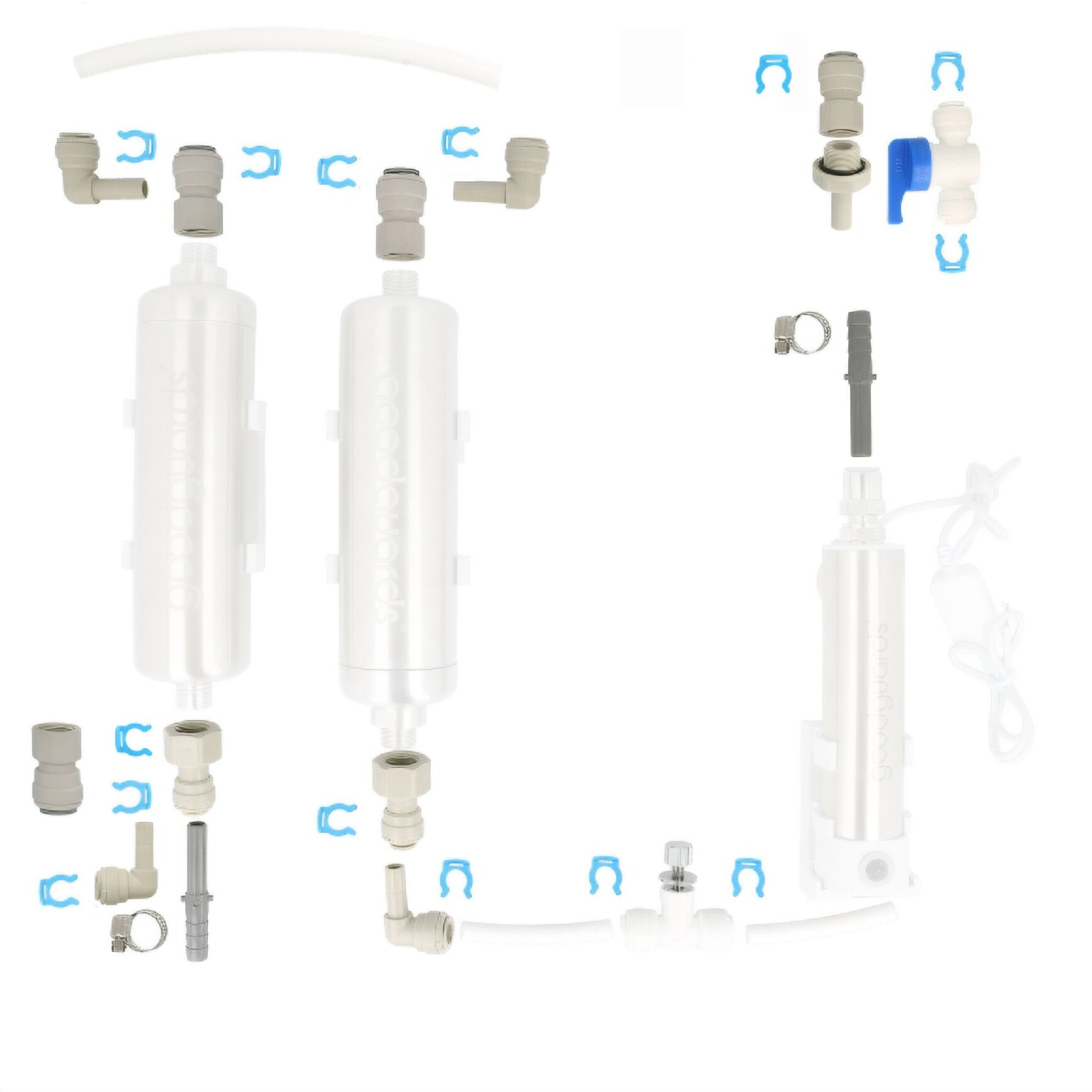 Das Installations-Set L ermöglicht die einfache Installation der Goodguards Wasseraufbereitungssysteme für sauberes Trinkwasser unterwegs. Es enthält alle notwendigen Komponenten für die Installation. Die Filtermodule Reinguard, Kalkguard und Keimguard sind separat erhältlich. Mit diesem Set legen Sie die Basis für bis zu 6000 Liter gefiltertes Wasser, das Schadstoffe wie Mikroplastik, Kalk und Keime sicher entfernt. Einfach zu montieren.