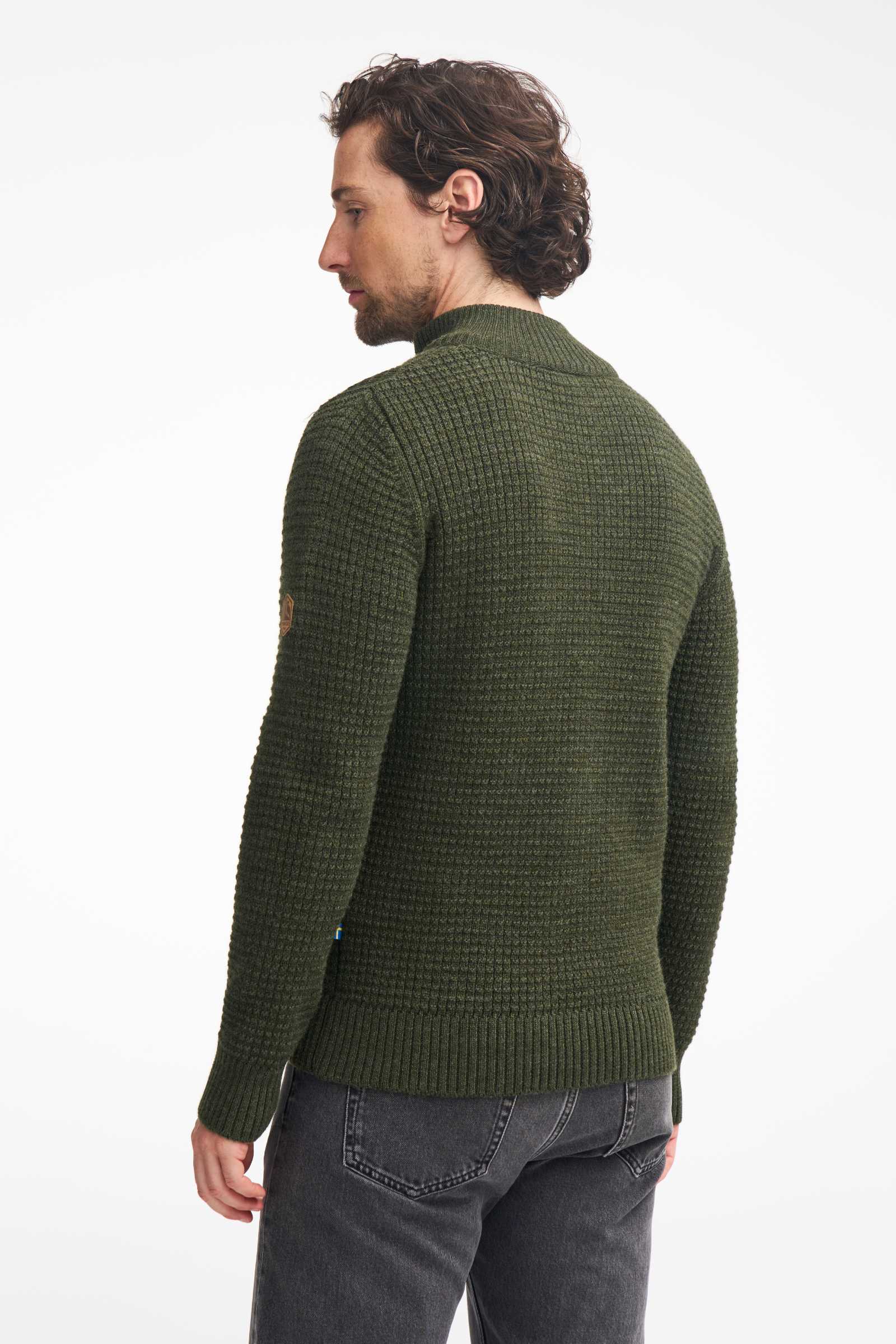 Ein wunderschöner Pullover aus 100 % Wolle mit stilvollem Strukturmuster. Die Stricktechnik ist für noch mehr Tragekomfort optimiert: Moritz fühlt sich jetzt glatter und etwas leichter an. Der kurze Reißverschluss vorne erleichtert das An- und Ausziehen und lässt sich zum Lüften öffnen. Oben am linken Ärmel befindet sich das Logo.