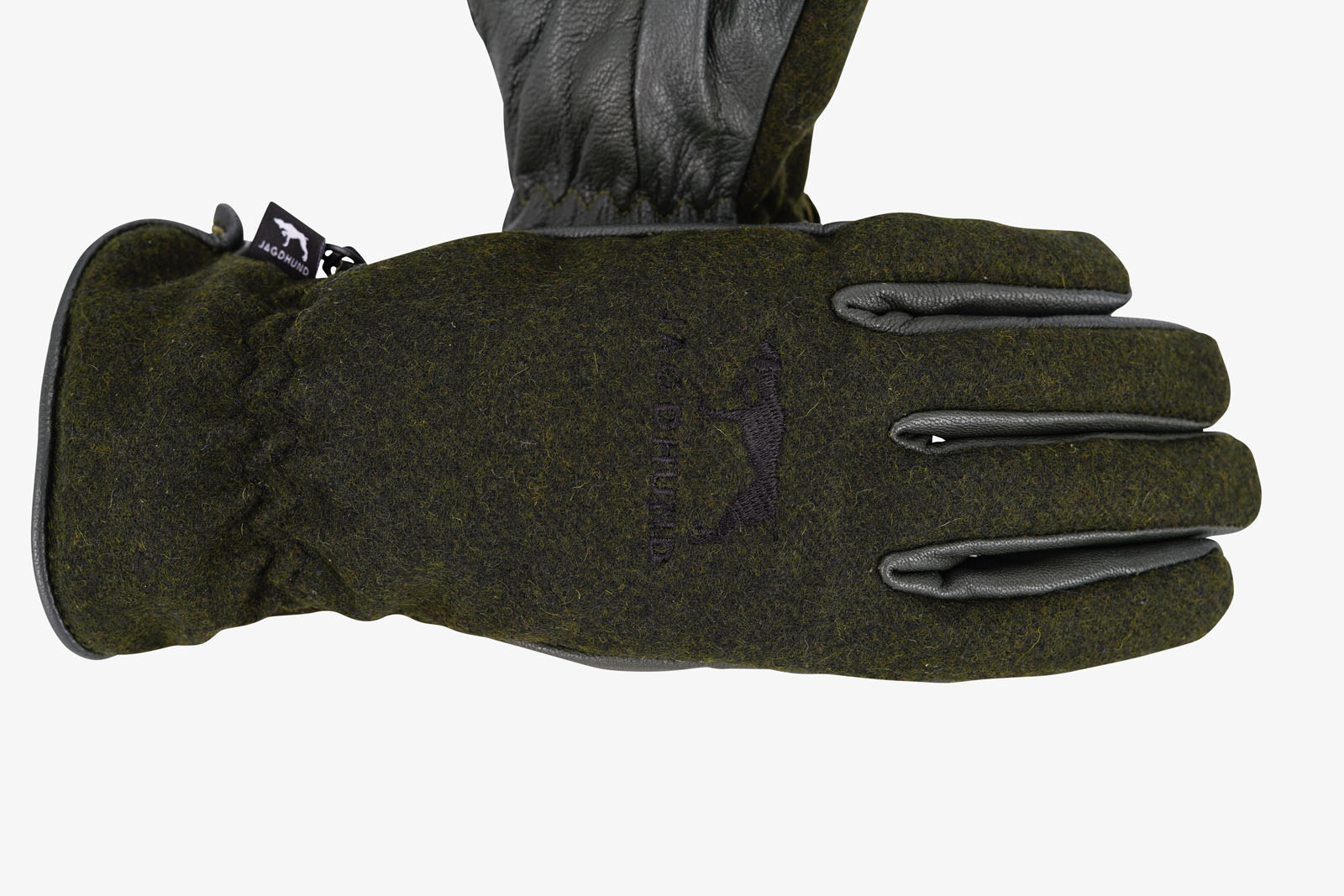 - Robuster und hochwertiger Fingerhandschuh aus Ziegenleder und Loden