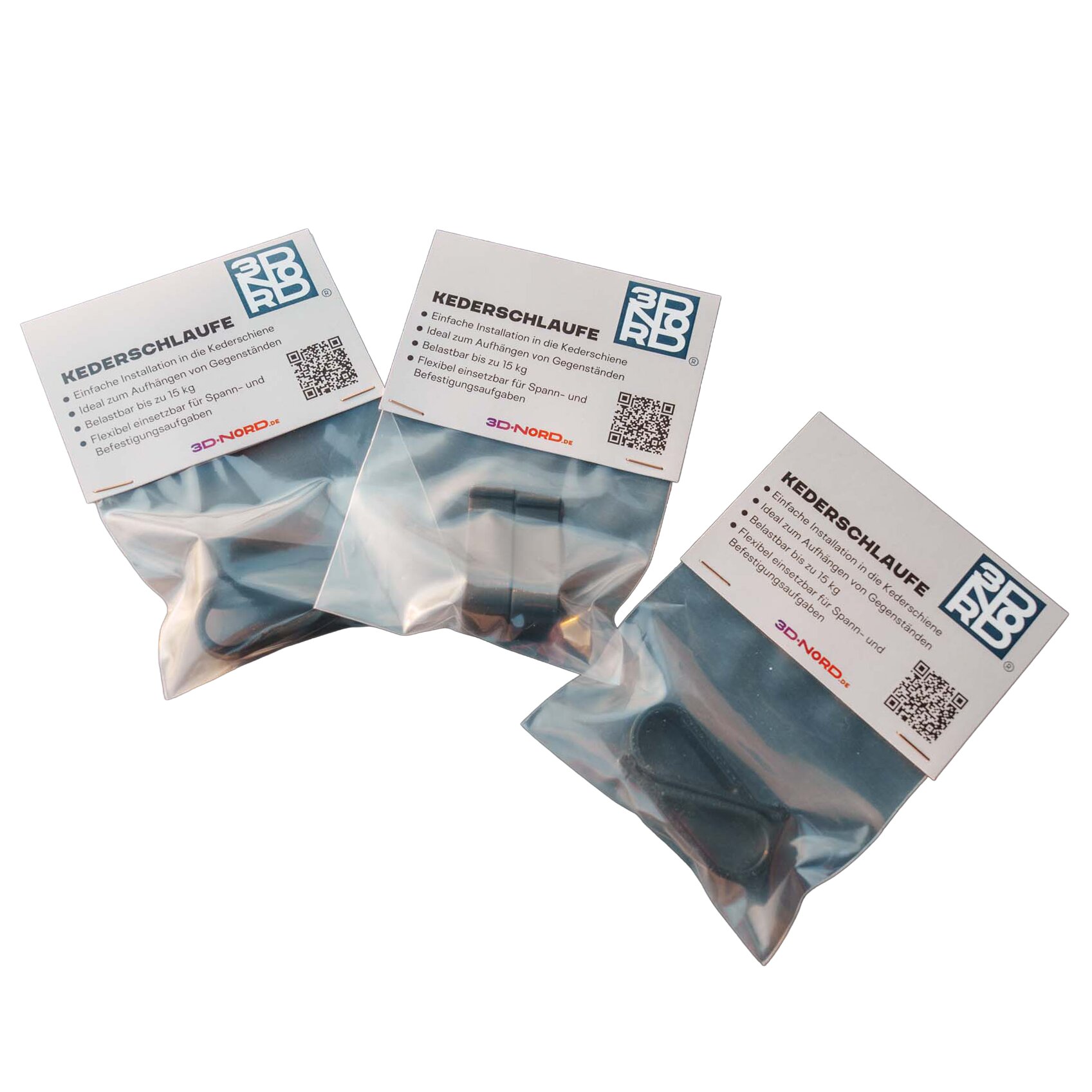 Für 7-mm-Kederschienen, wetterfest, formstabil und aus robustem 3D-Druck-Material. Einfache Montage ohne Werkzeug. Hält bis zu 15 kg.