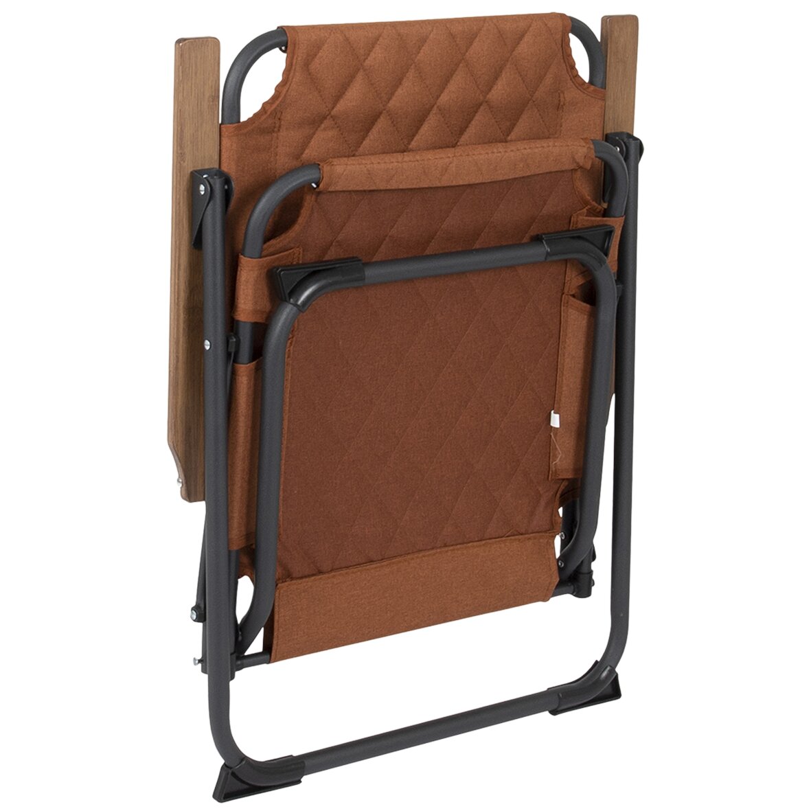 Ein extrahoher und -breiter, bequemer Klappstuhl. Der Klassiker im modernen Industrie-Look. Ein Stuhl, der Stil, Komfort und Funktionalität vereint. Ausgestattet mit einer gepolsterten Kationic-Polsterung für ultimativen Komfort, einem leichten Aluminiumrahmen und Armlehnen aus Teakholz. Darüber hinaus ist dieser Stuhl mit zusätzlichen Stabilisatoren und einem „Sicherheitsschloss' gegen unerwünschtes Falten ausgestattet. Kompakt zum Mitnehmen.