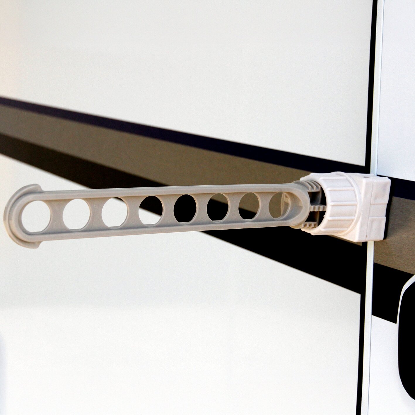 Der speziell entwickelte Klemm-Wäschetrockner ist die ideale Lösung fürs Camping: Er lässt sich einfach an Markisen, Wohnmobilen oder Zeltrahmen befestigen – ganz ohne Bohrung. Dank robuster Klemmen hält er sicher auch bei Wind. Ihre Wäsche bleibt sauber aufgehängt, ohne Kontakt zu Boden oder Untergrund. Gleichzeitig sorgt das kompakte Design für einen stilvollen Akzent im Campingeinsatz.