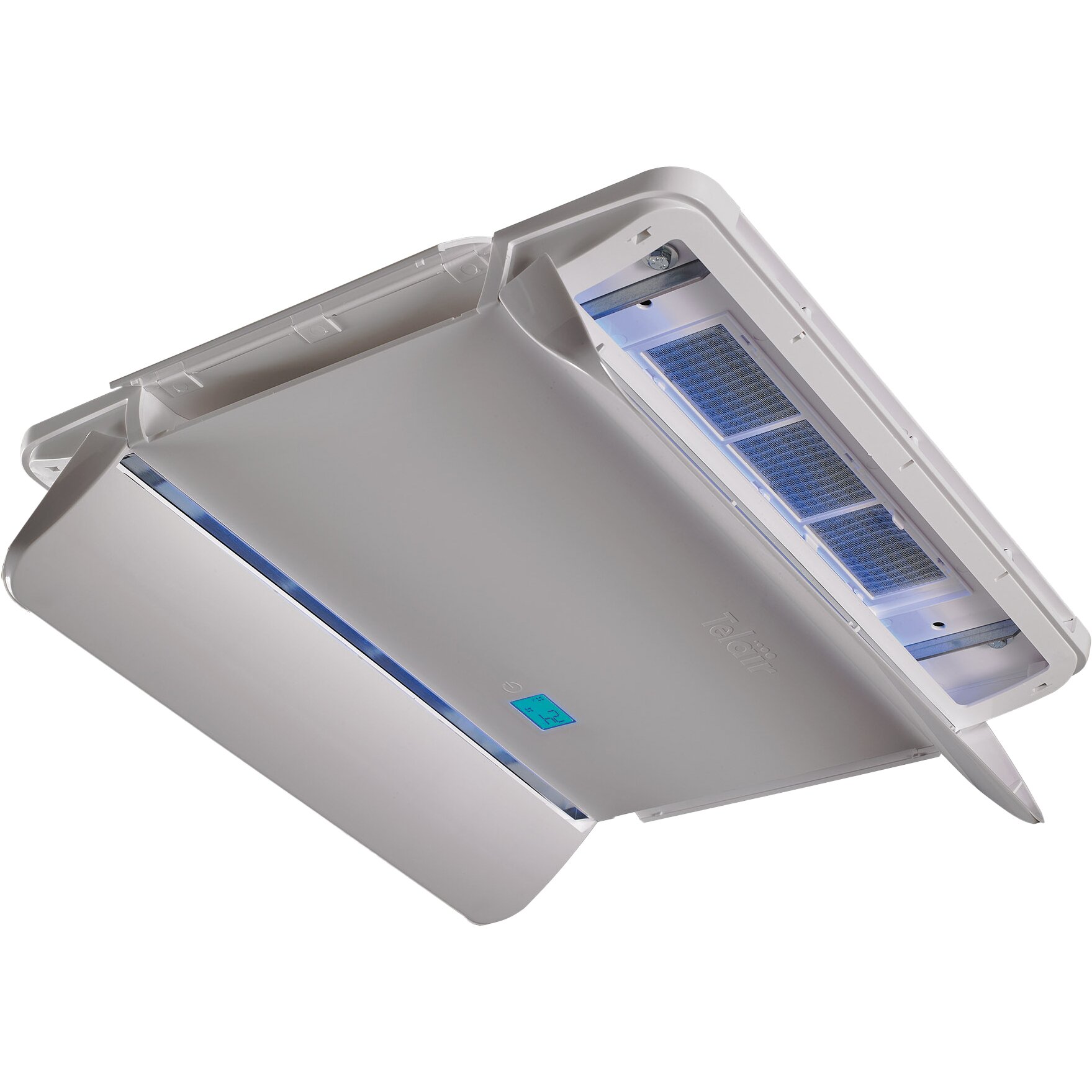 Die speziell für Camper Vans entwickelte vollautomatische Klimaanlage Clima e-Van mit Wärmepumpe eignet sich ideal für die Installation auf kleinen Dächern, ohne die Dachluke entfernen zu müssen. Leise, leicht und installationsfreundlich kann sie nicht nur über das übliche 40 x 40 cm große Loch für die Dachluke, sondern auch über ein reduziertes 36 x 36 cm Loch auf dem Dach befestigt werden. Diese technologisch fortgeschrittene Klimaanlage wurde unter Berücksichtigung aller neuen Ressourcen konzipiert, um ein umweltgerechtes Produkt zu schaffen. Es wurde ein Kältemittelgas R32 mit dem derzeit niedrigsten Treibhauspotenzial (GWP 675) für Kraftfahrzeugklimaanlagen verwendet, was die Umweltbelastung im Vergleich zu den bisher verwendeten Gasen um 70 % reduziert. Die Funktionen Kälte, Wärme und Automatik sind über eine Fernbedienung und Timer-Funktion auswählbar. Im Lieferumfang ist ein superflacher Diffusor mit abfallendem Profil an allen 2 Seiten enthalten.