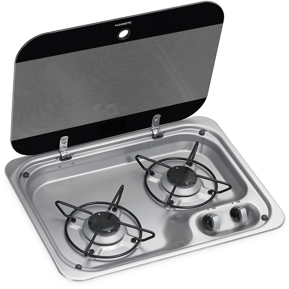 Einbau-Kochmulde mit Abdeckung aus temperaturbeständigem Sicherheitsglas und Sicherheitszündsystem; Leistung 2 x 1,6 kW, Gasverbrauch 233 g/h. Einbautiefe 8 cm, Ausschnittmaße 44 x 31,5 cm, Außenmaße 46 x 33,5 cm, Gewicht 4 kg.Leistung Kocher: 1 x 1 kW / 1 x 1,6 kW