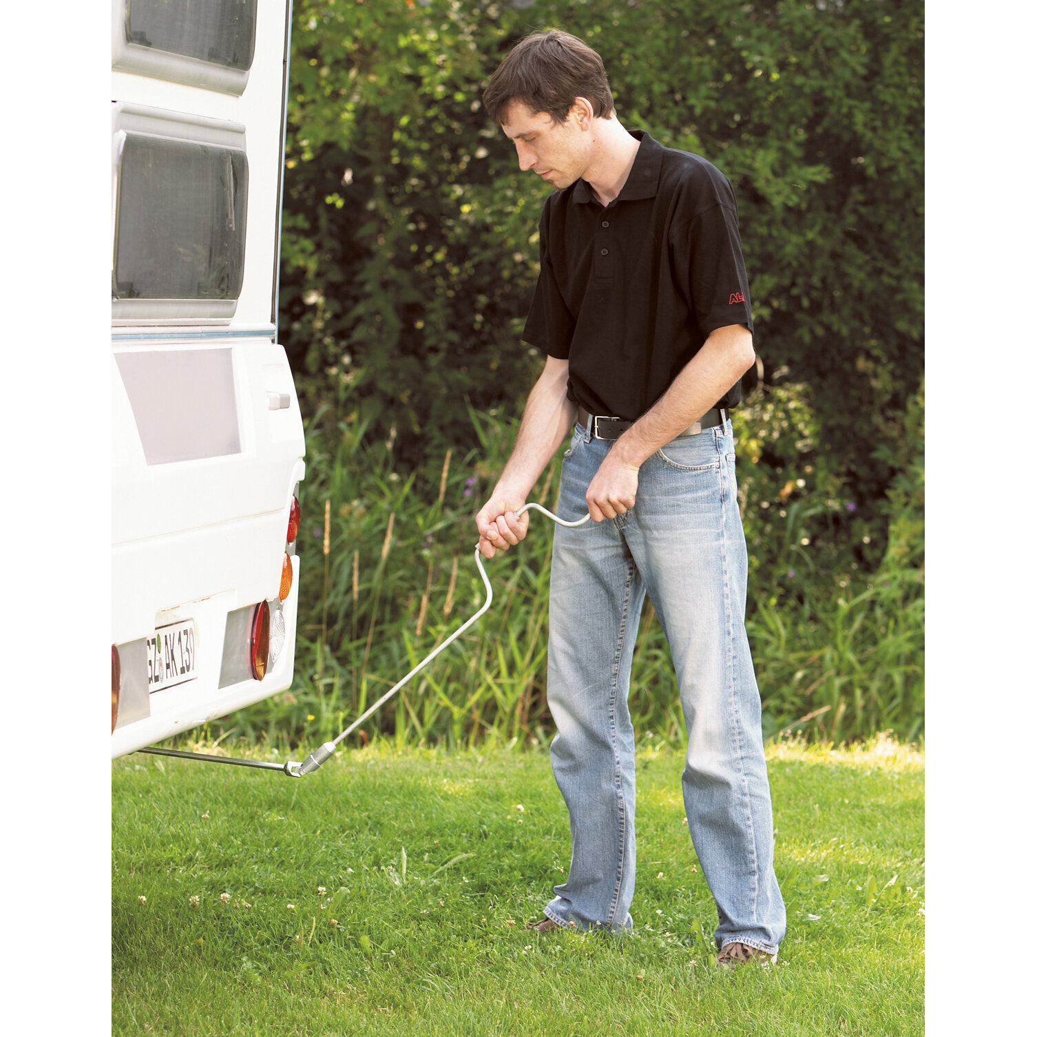 Das AL-KO Komfortkit ermöglicht es, aufrecht stehend über ein Kreuzgelenk die Stützen zu bedienen.