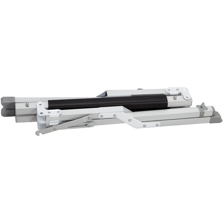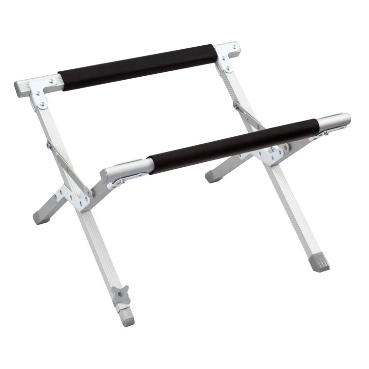 Komfortabler, klappbarer Kühlboxständer aus robustem Alu-Vierkantrohr mit Bodenschonern und gepolsterten Auflageprofilen. Ein Standbein ist mit höhenverstellbarem Niveauausgleich ausgestattet. 2 Arbeitshöhen sind ein- und feststellbar. Komplett mit Packsack.