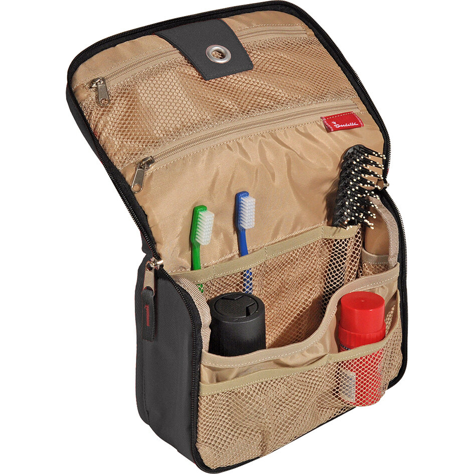 Mit stabiler Öse zum Aufhängen, ausgestattet mit einem großen Hauptfach, 2 Netztaschen und 2 Reißverschlusstaschen im Deckel. Sie wird durch